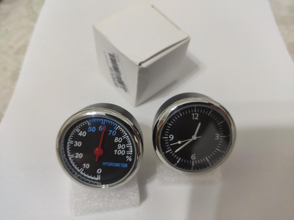 Puntos Car Interior Mini Quartz Watch Clock Hygrometer Thermometer Dashboard Ornament