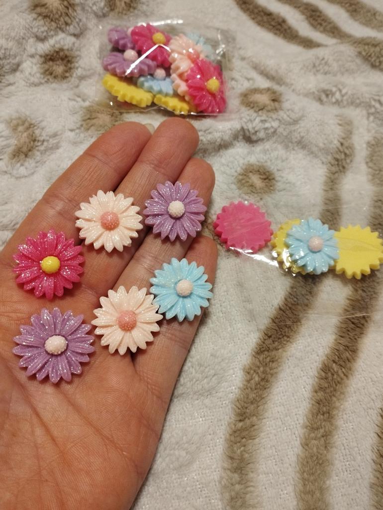 I ordered 3 packs of these resin flowers, supposed to have 20pcs in each pack, (60 in total) I received 2 packs containing 10pcs in each, very disappointed that it cost £9.22. NO I won't be buying this item again