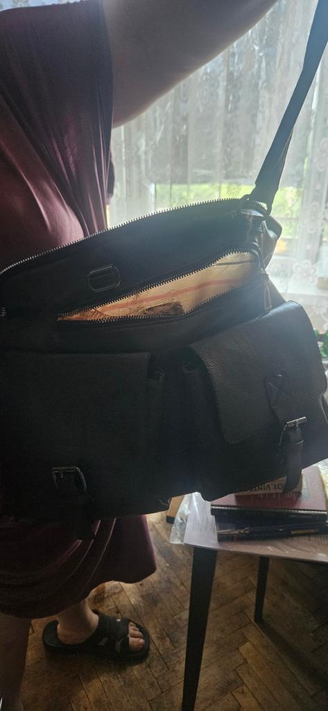 The bag is light, convenient external pockets and several compartments inside, but... the lock on top is sewn in waves, which is not very convenient when fastening.