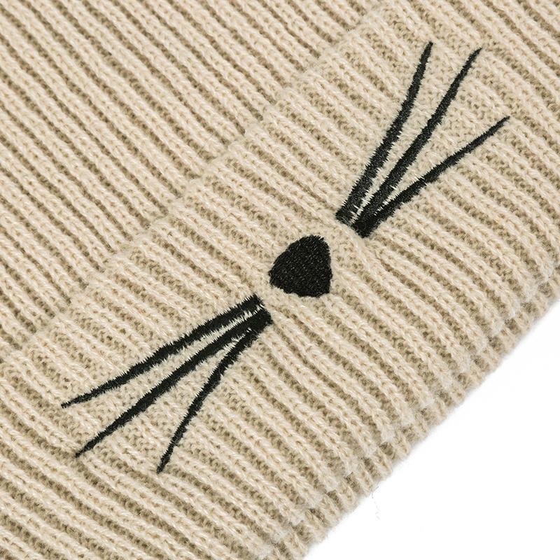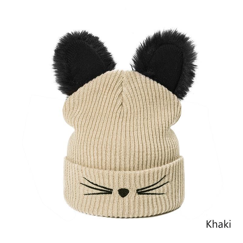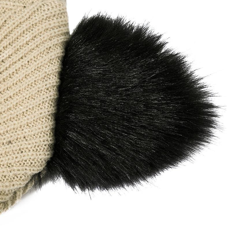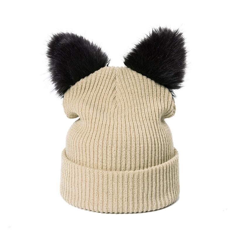 Knitted Womens Cat Ears Imitation Mink Hat Skullies Fur Pom-pom Hat Female Hat Cute Hat