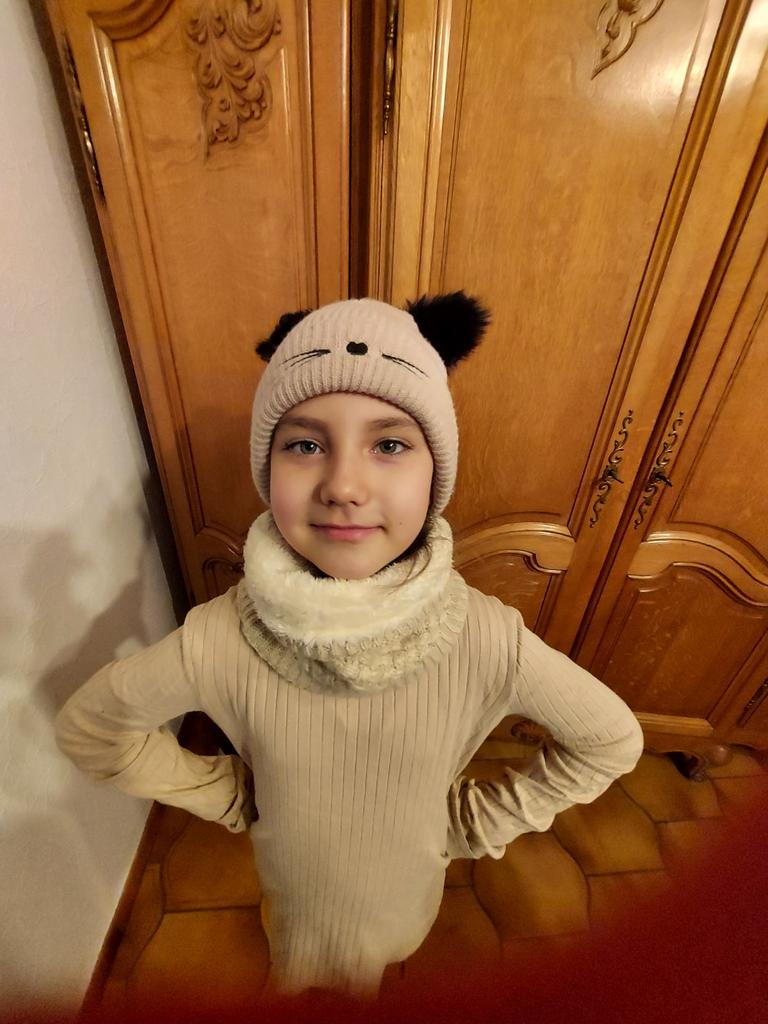 The cap matches the description and picture. My daughter is happy. Soft, warm, child for 7 years, in size!