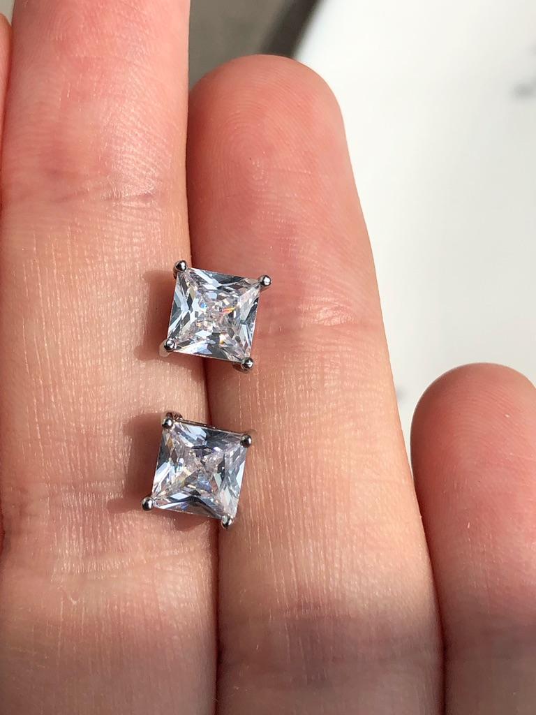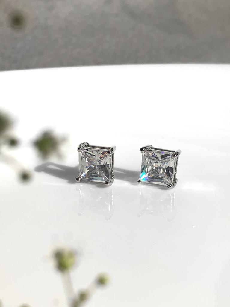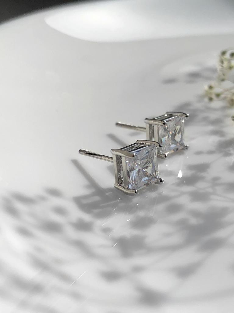 Fashion Created Square Cut White Blue Red Green Stone Stud Earrings for Women Hypoallergenic Screwback Earrings Birthday Gifts