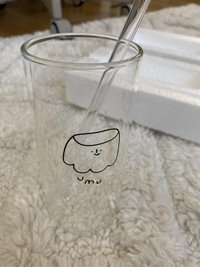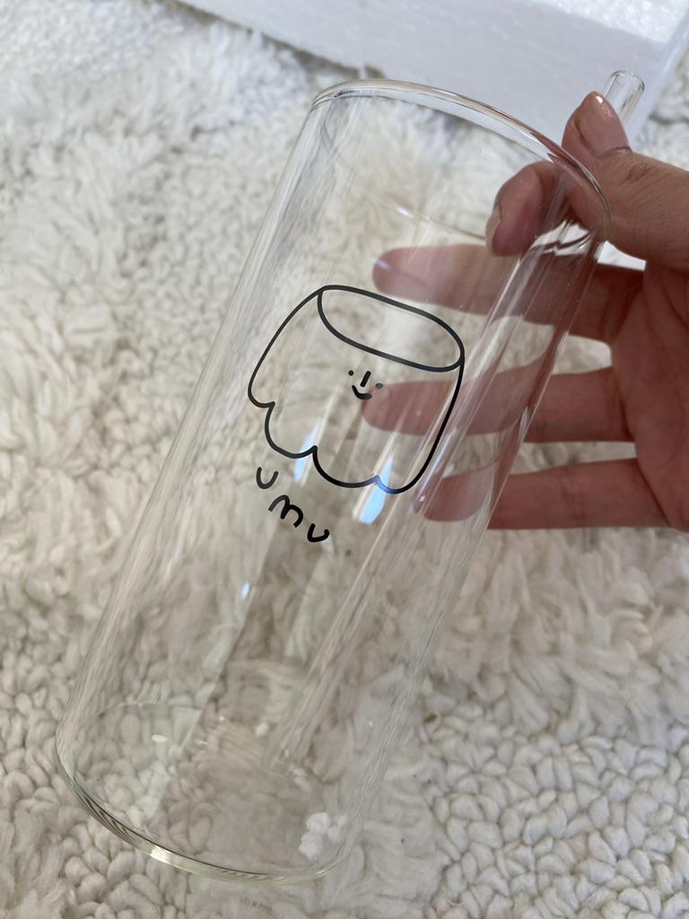 Ins Korean Style Cartoon Glass Cup With Straw Transparent Coffee Milk Tea Mug Water With Straw