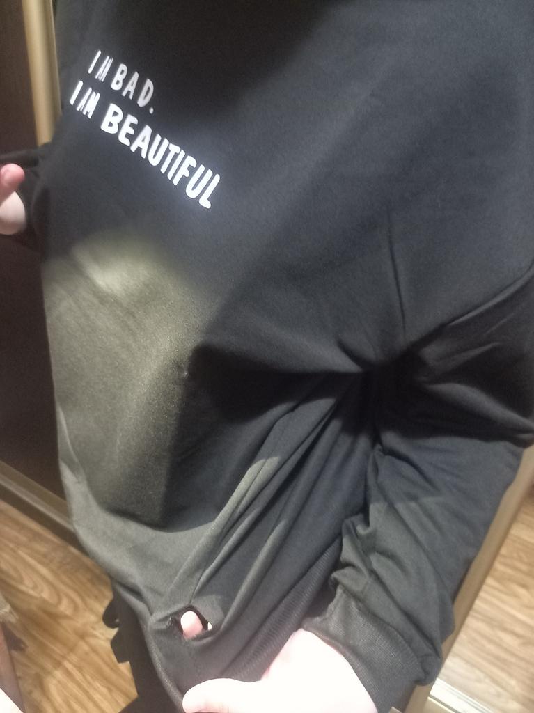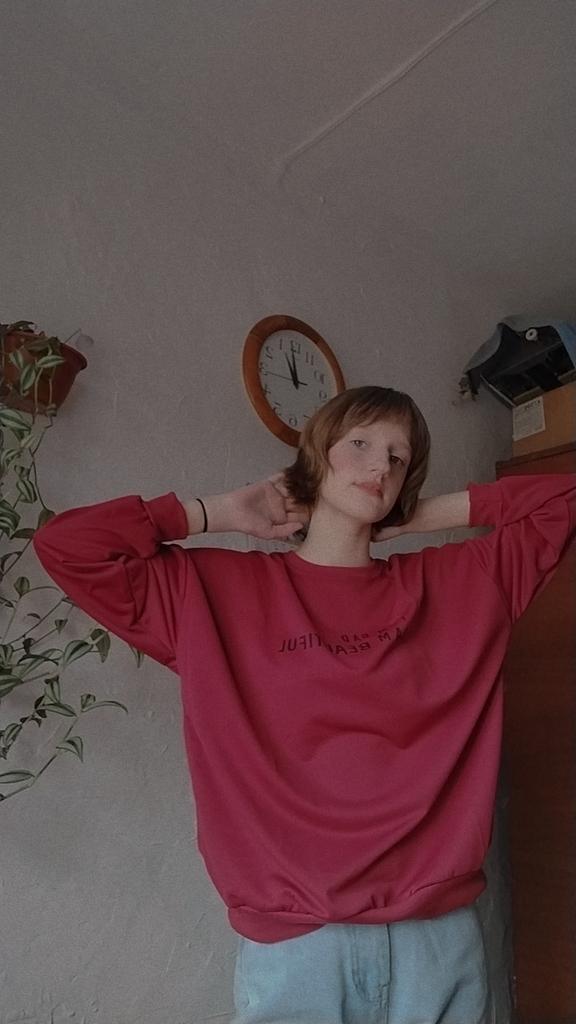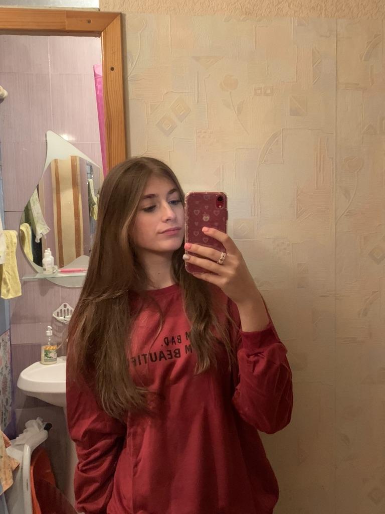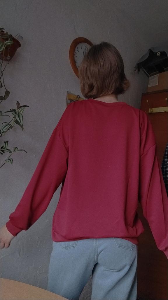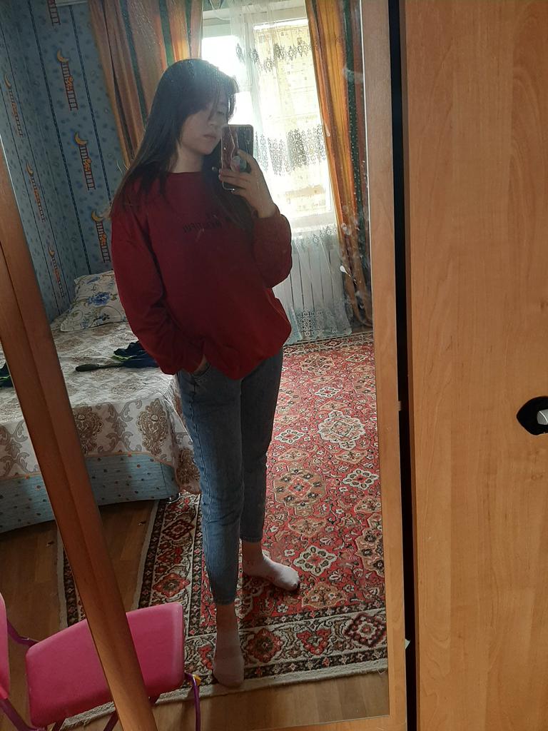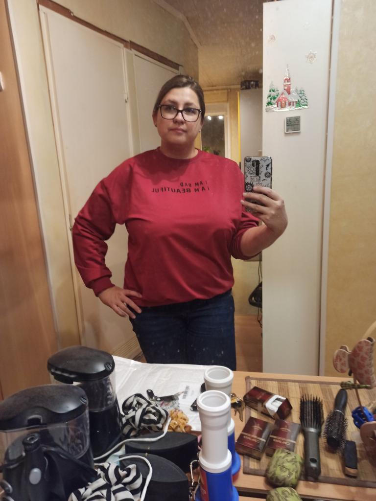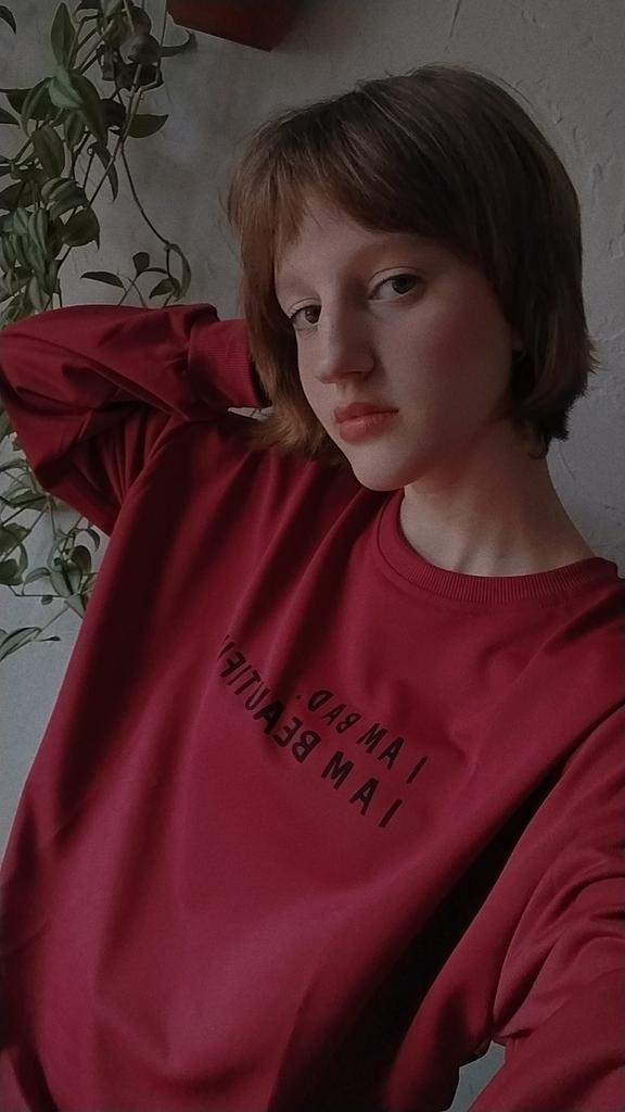 It was necessary to take a larger size, it does not look quite oversized, but in principle it is normal. I will wear It is a pity that it is very thin. But the color is bomb! And what about the good quality of the inscription, as long as it does not peel off.