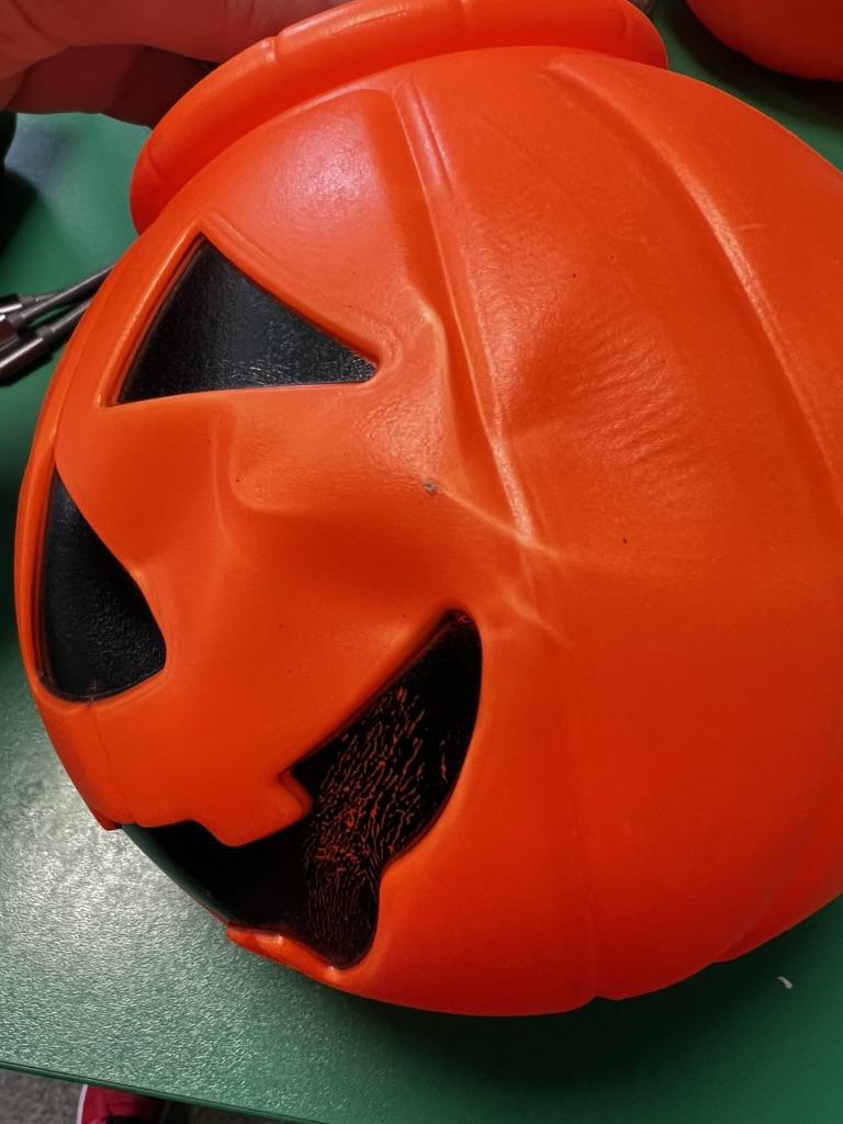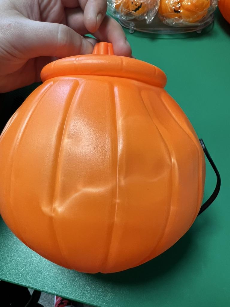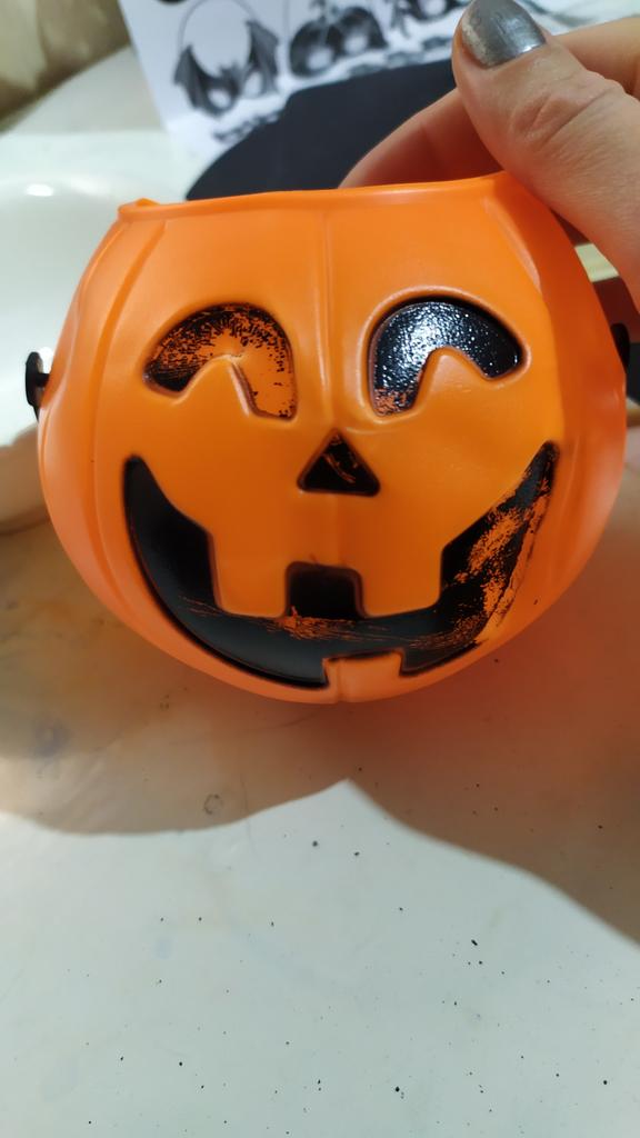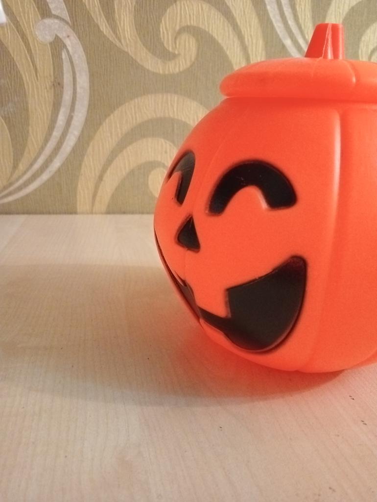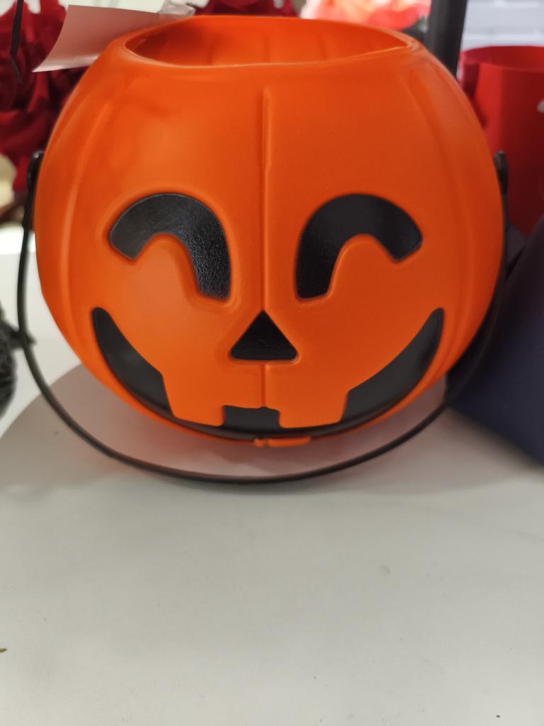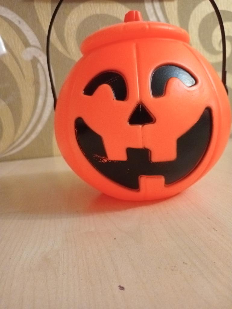 A bucket for Halloween, for example, for sweets. It came a little crumpled, but fortunately it was able to be pushed back and is in good condition. It has a holder and a lid 🎃👍