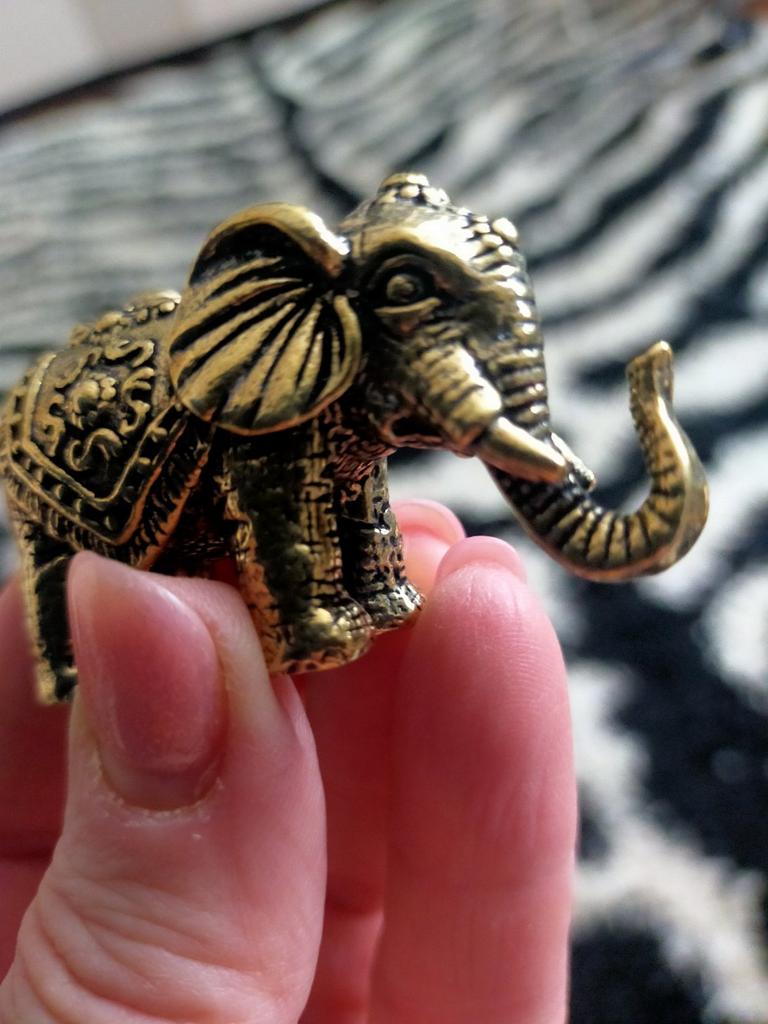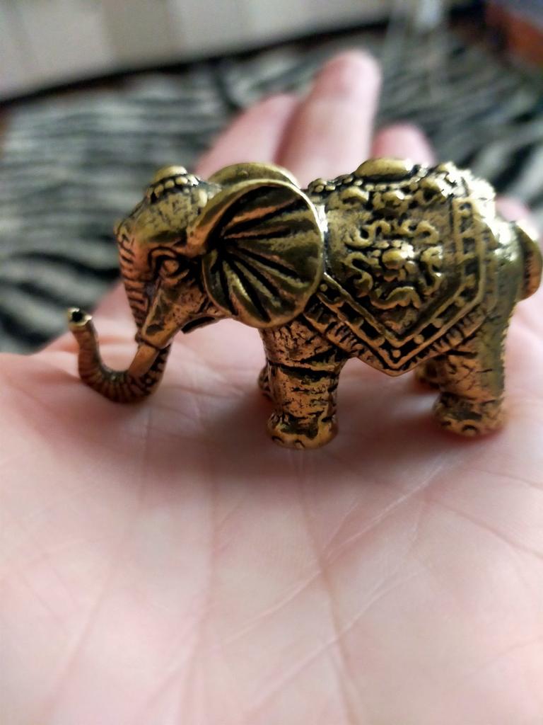 a small brass good fortune elephant so very well detailed it's wonderful and believe me for its size it is heavy!!!