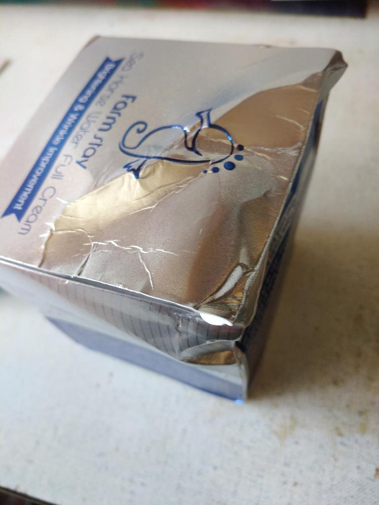 The box is not vacuum-sealed, in dust, the cream leaked, smeared everywhere on the container itself,