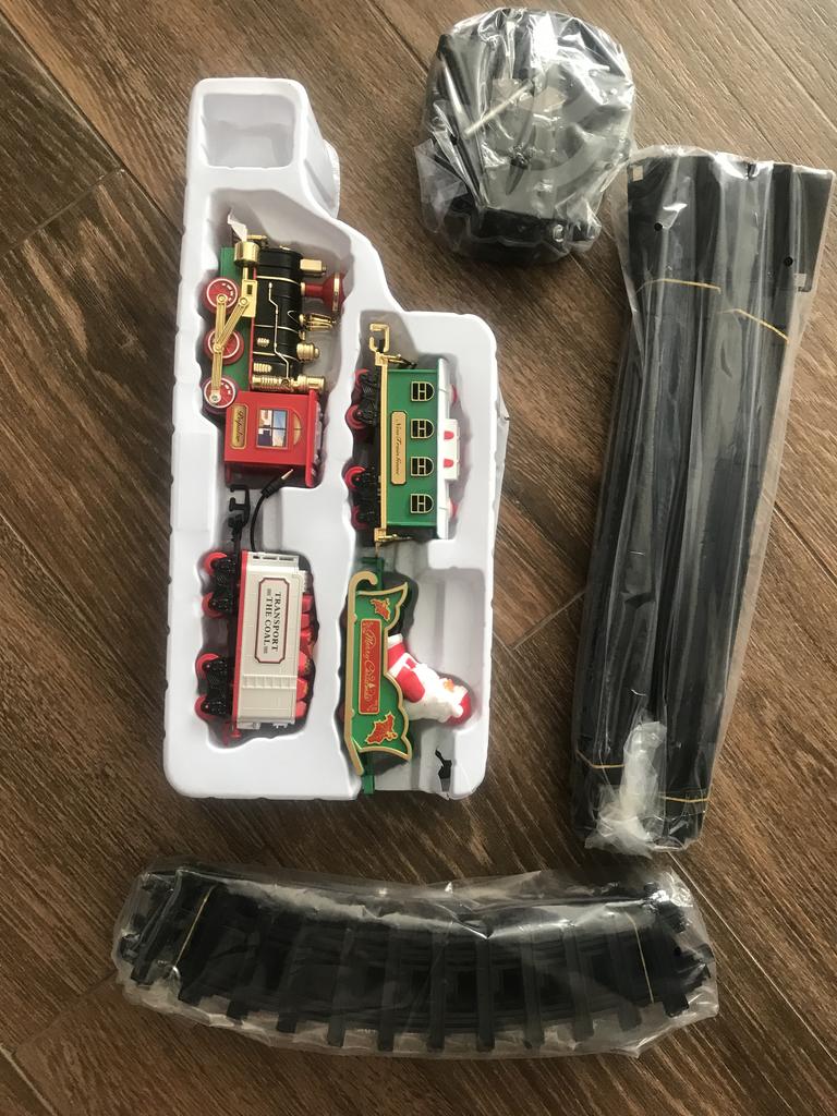Christmas Train Electric Toys Christmas Tree Decoration Train Track Frame Railway Car with Sound&Light Rail Car Christmas Gifts