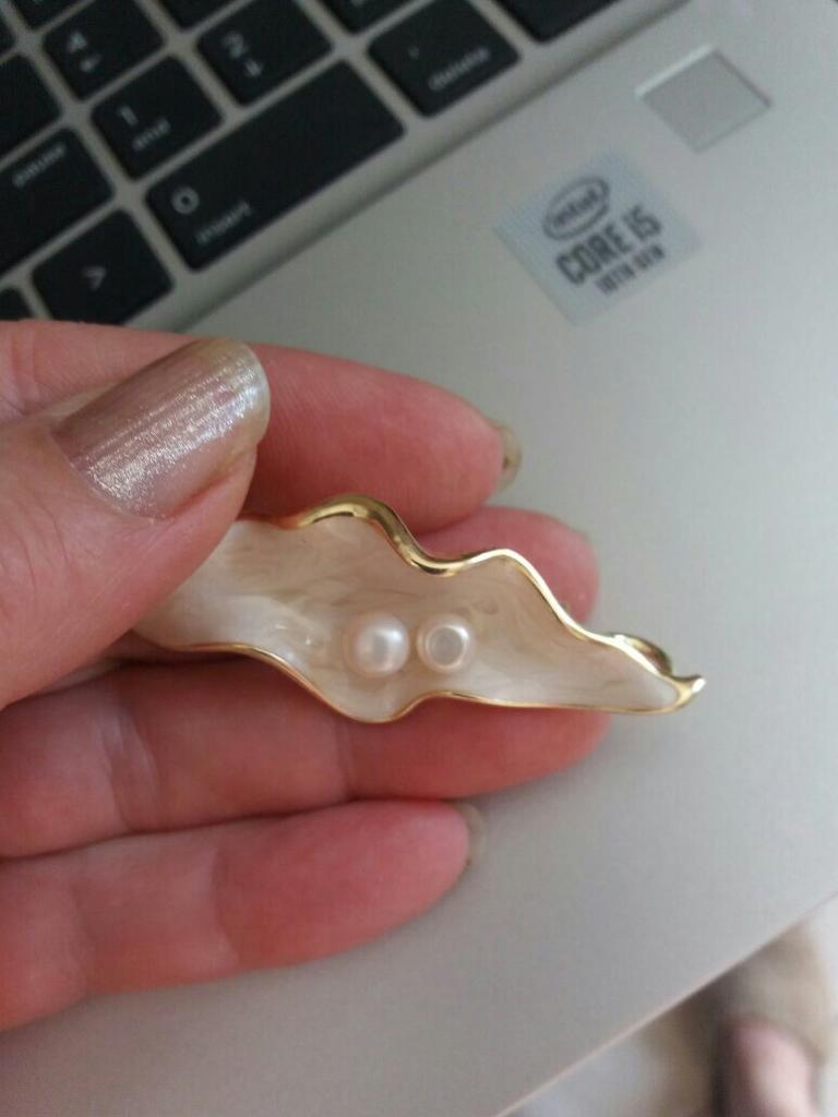 The brooch is very beautiful, high-quality, looks expensive. Pearls look natural. Very satisfied with the purchase