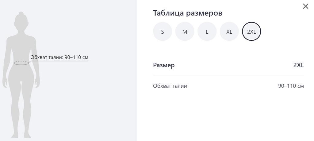 Very small 2XL fits size 46-48. Does not correspond to the size chart, which indicates OT90-110