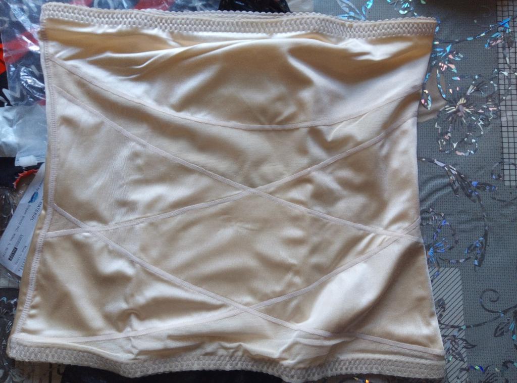 A good belt, medium tightening, large, wide from chest to hips. I thought that it was thin, but no, thick silk in quality.