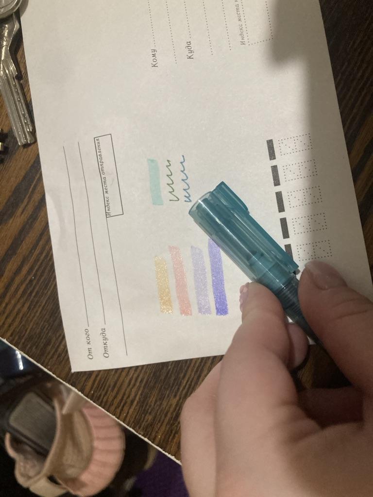 Pleasant colors, pleasant to use There were balls on the ends of the pens to prevent them from drying out, which is very nice The marker highlighter has an interesting and good thing - it closes like a handle and inside there is a special thing that prevents it from drying out
