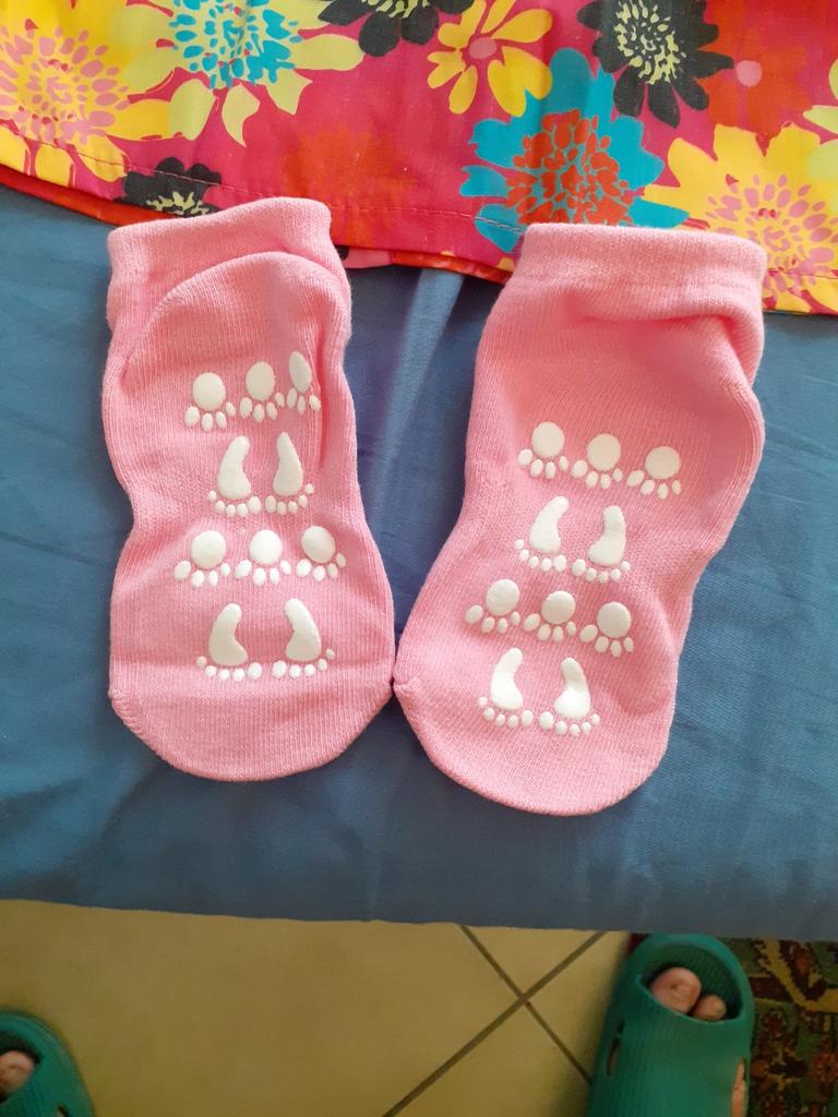 The socks came in time. Good quality of the sock itself, but not that of the anti-slip covering. Worn for 3 days for 6 hours in the kindergarten, they could then also be disposed of. The lining of the sock doesn't even last 3 days!
