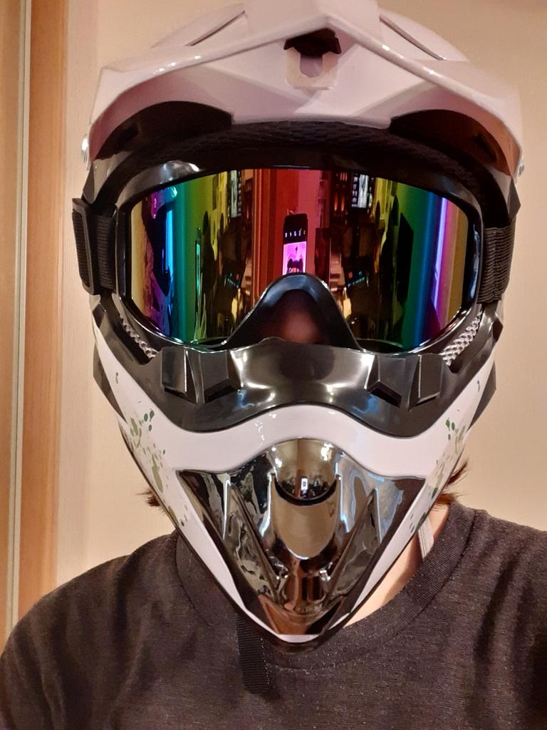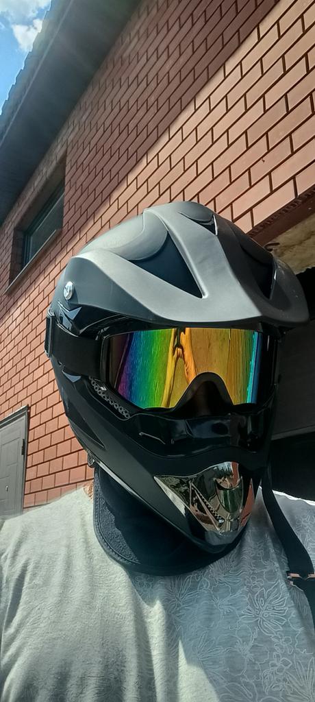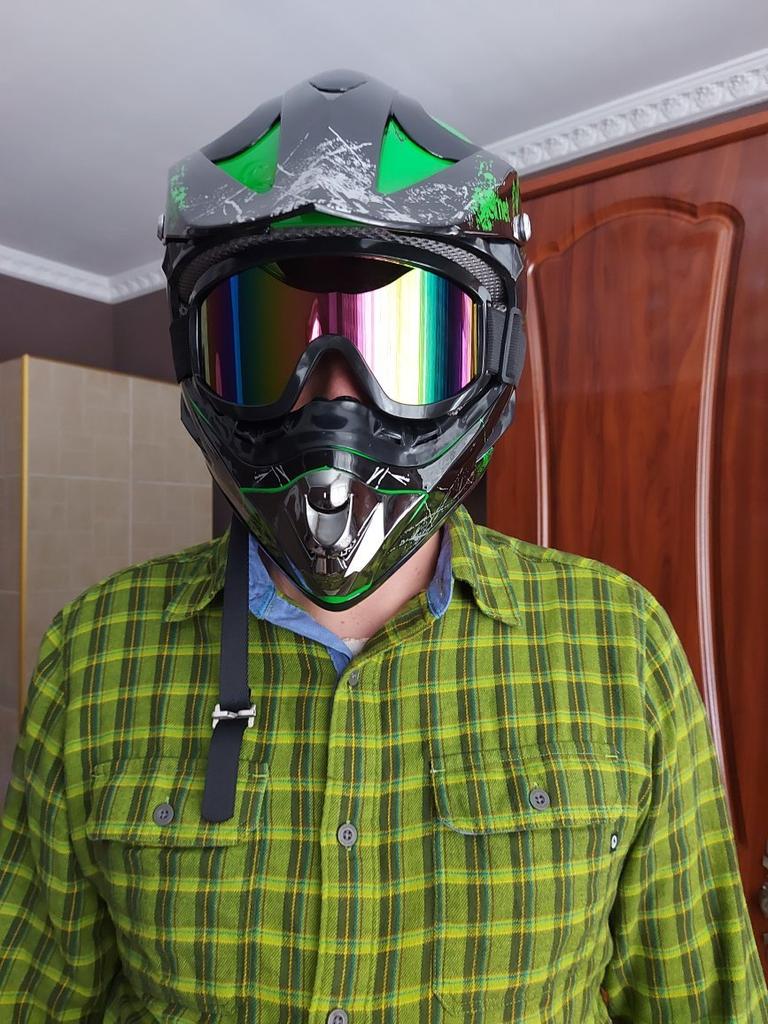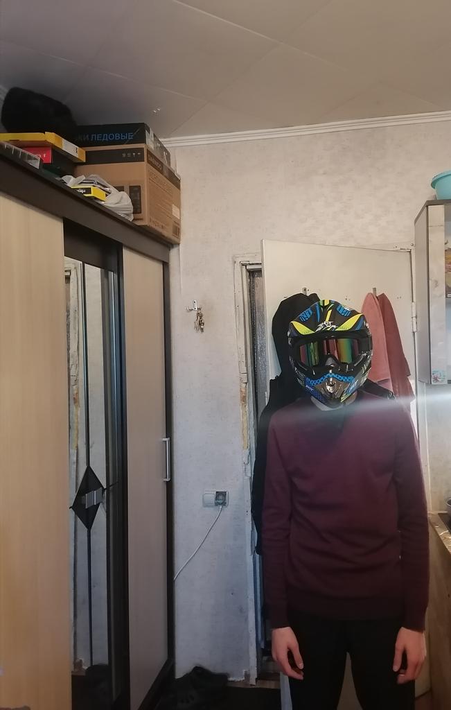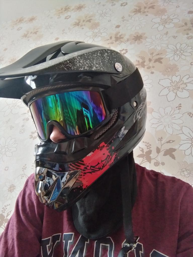 Very cool helmet, went for about 1.5 months, everything almost fit in size, but the helmet presses a little on the cheeks, packed normally!