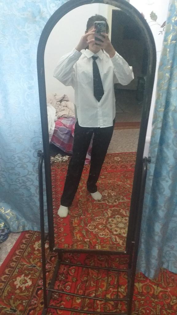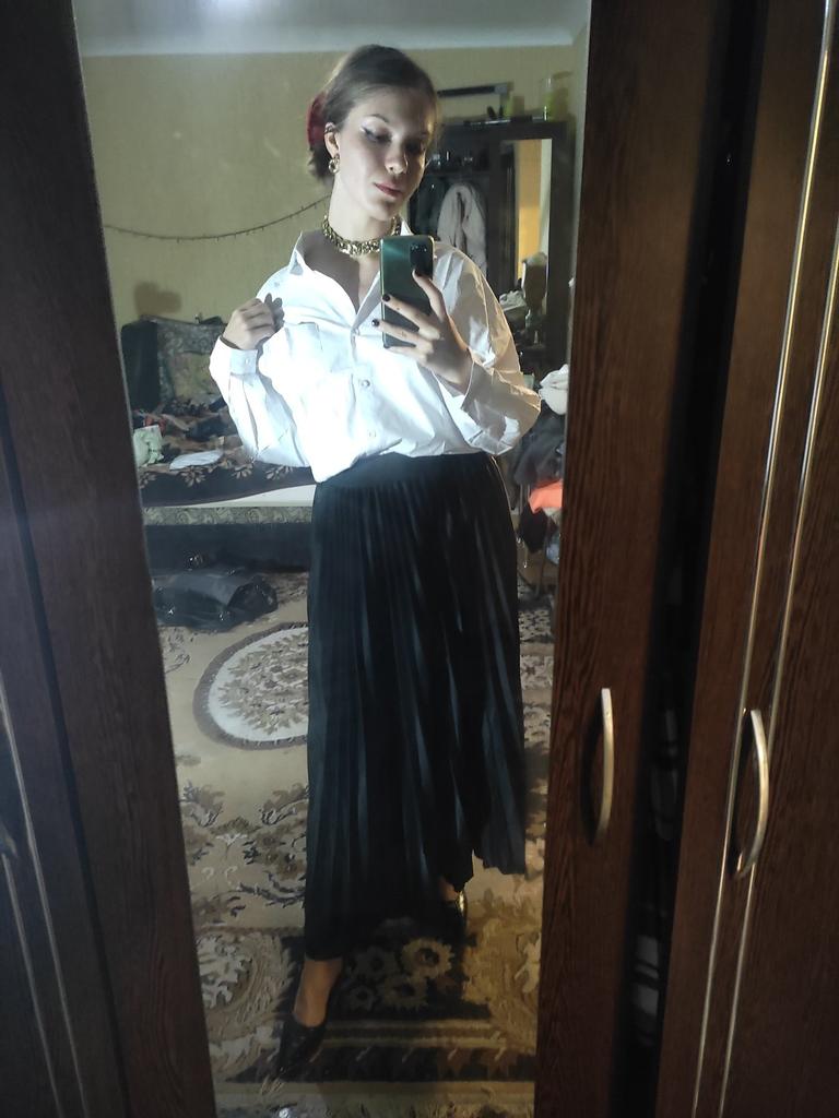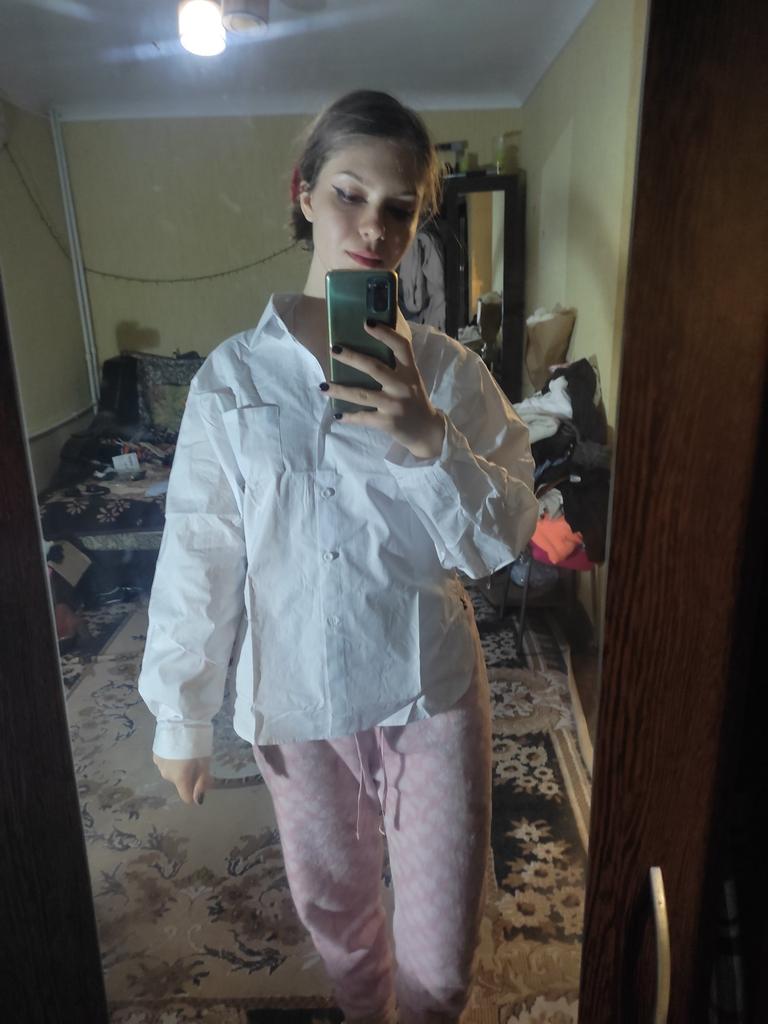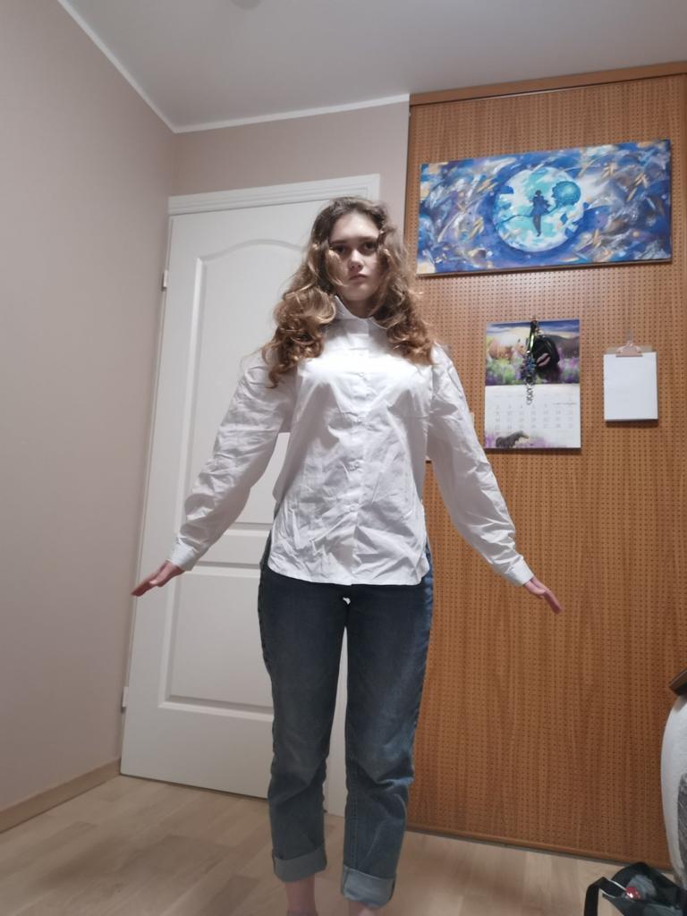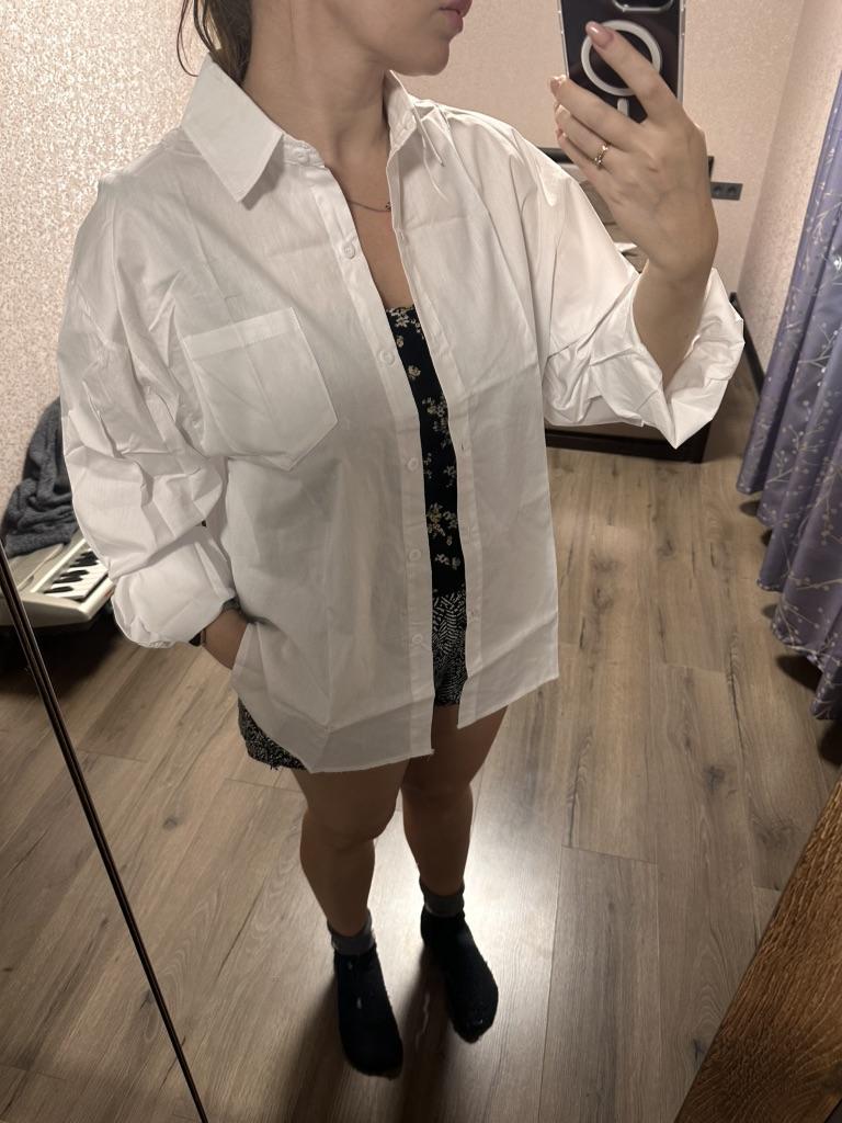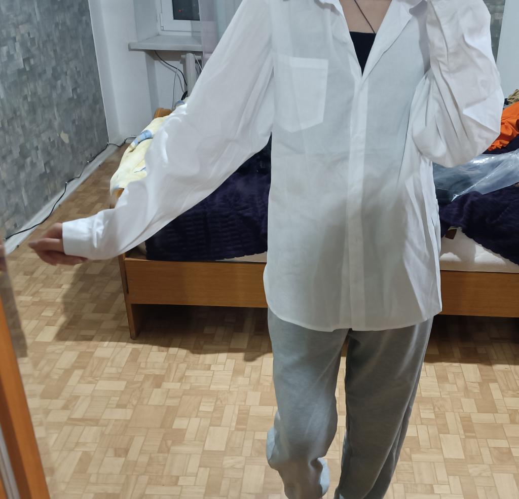 The shirt is a little short in style, I like it. I took size 46 XL, I think that for oversize it could have been larger, but it fits well)