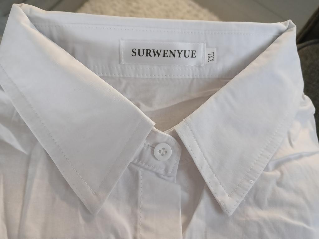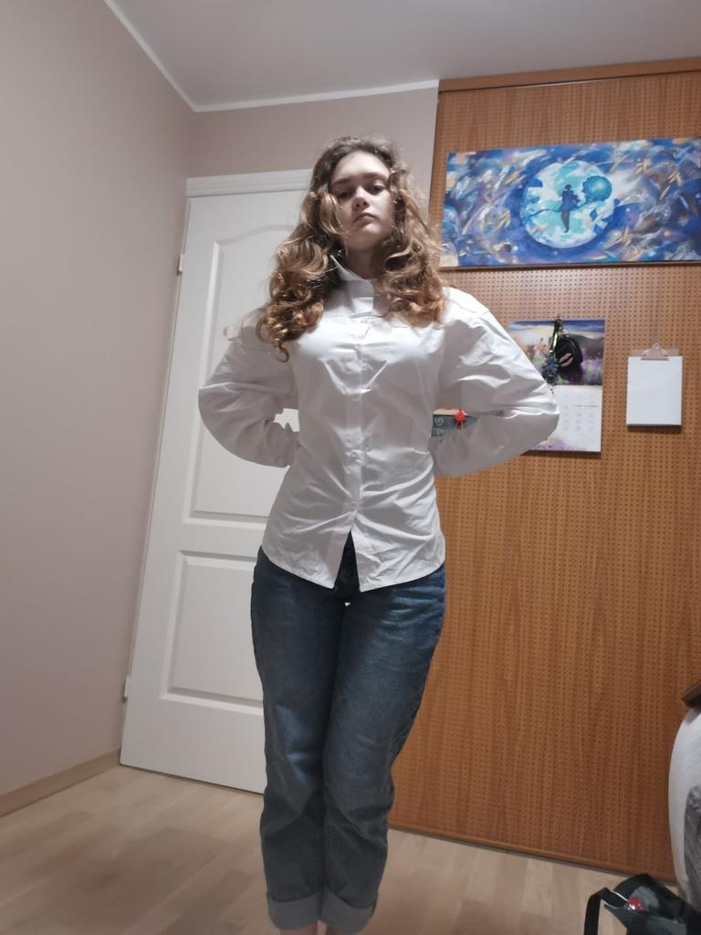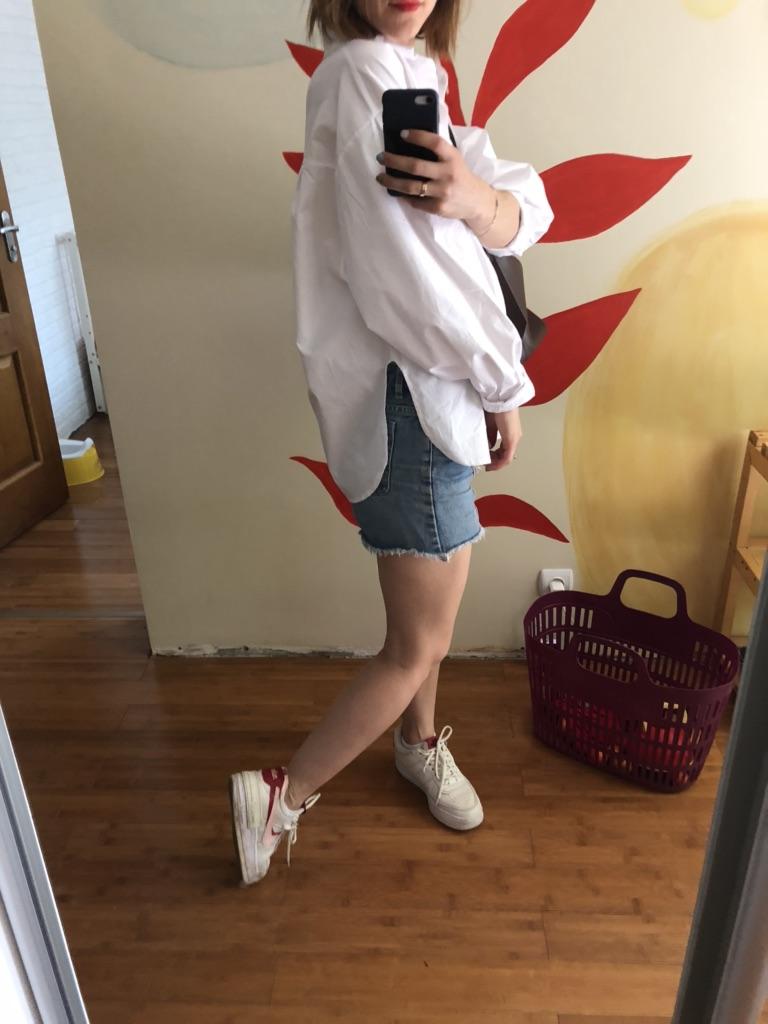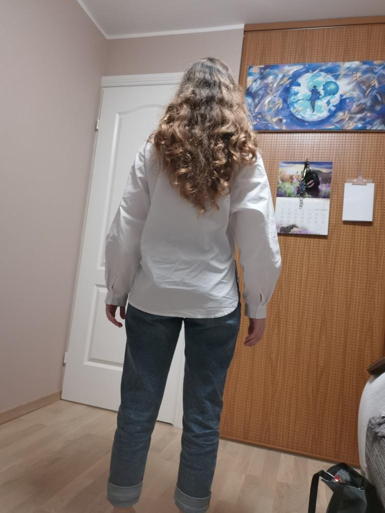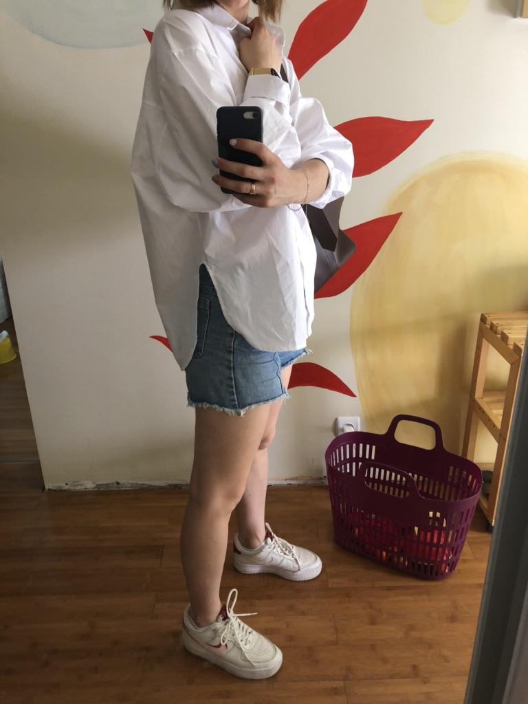 White shirt. Also a part of the basic wardrobe. ☝️ The shirt looks very nice, has a good workmanship and is very comfortable to wear. What I love about it is that it's pretty loose. 😊 There are also small cutouts on the two sides. Thus, the classic shirt looks very untypical. Absolutely thumbs up for this price.👍
