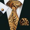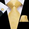 Hi-Tie Mens Golden Silk Tie Business Wedding Necktie Hanky Cufflinks