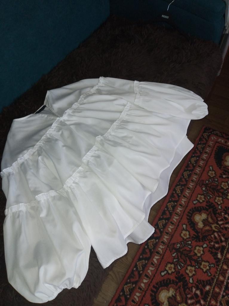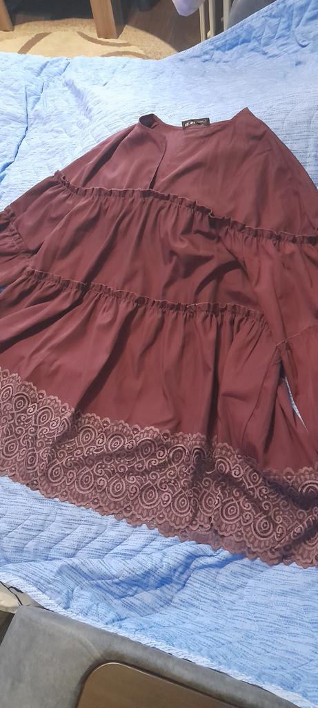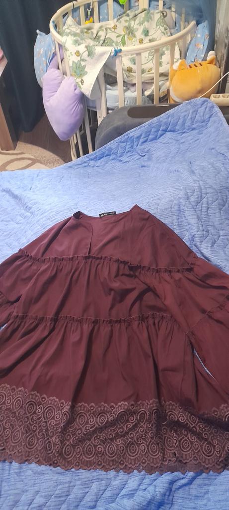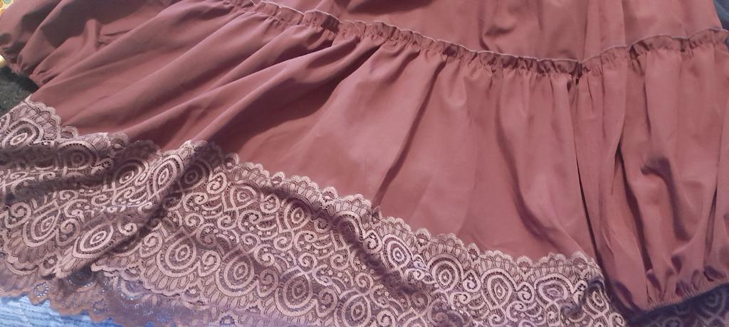 The style is beautiful, but it's sewn from simple polyester fabric, lacks lightness and airiness, fits like on a pregnant woman, the sleeves are like balls due to the thick material, overall, the festive effect is lost due to the thick fabric..