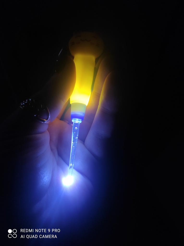 The lamp is shining, there are two more spare blades. Nicely