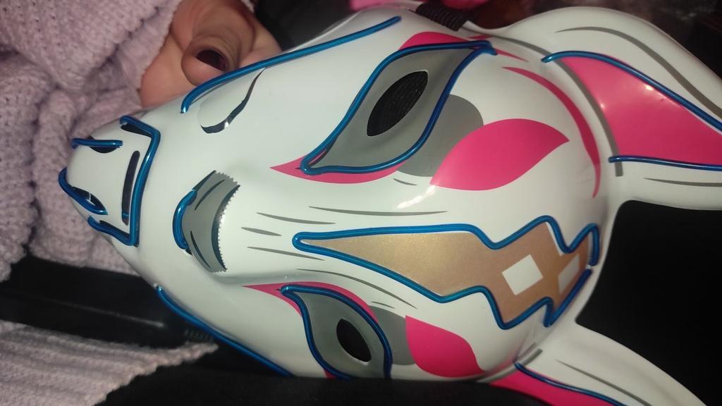 Unfortunately, the goods came to us totally damaged, the ear broke off a piece and the mask has a tear