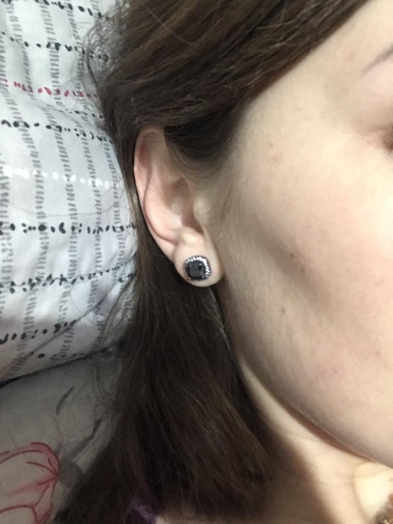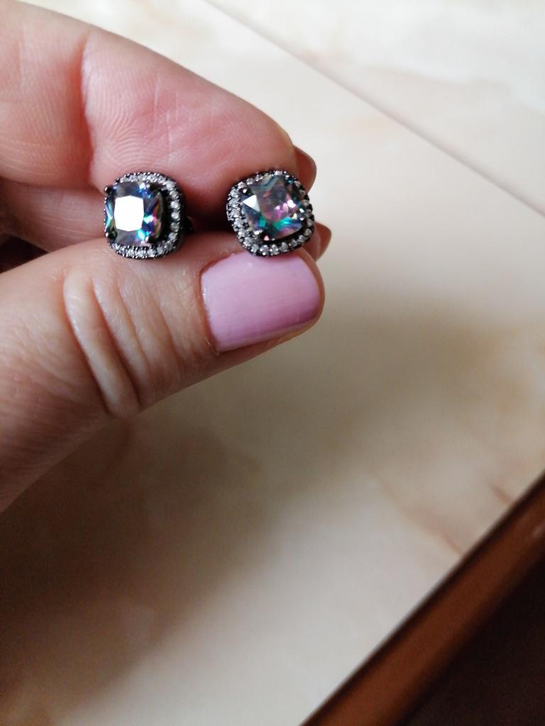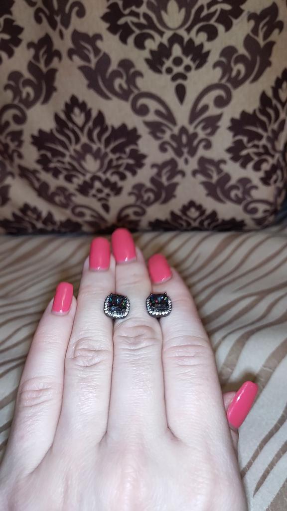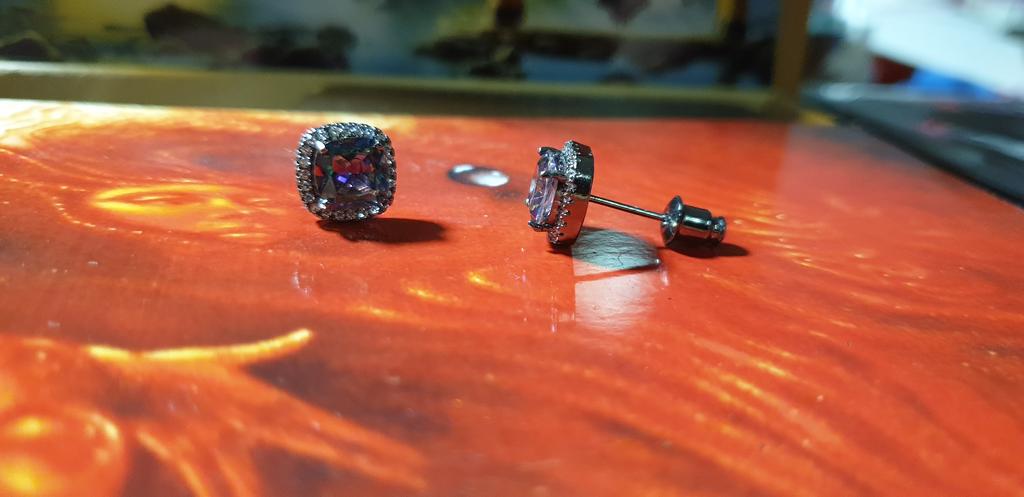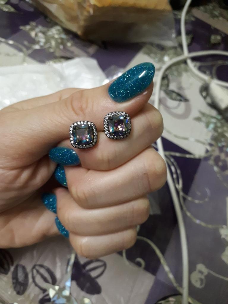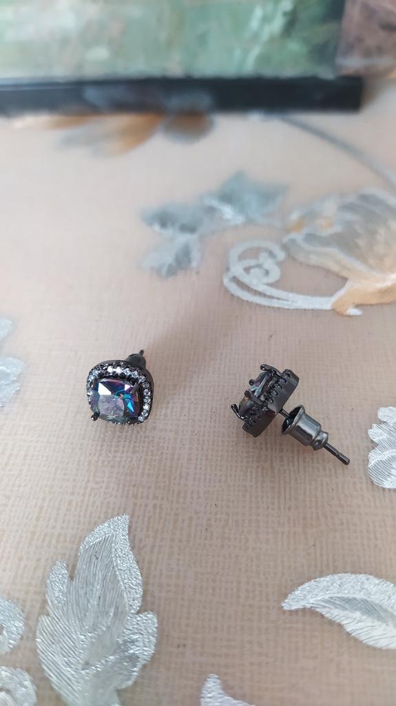 Black Gold Color Princess Cut Blue Black White Purple Multicolor Stone Stud Earrings Wedding Engagement Rainbow Birthstone Earrings