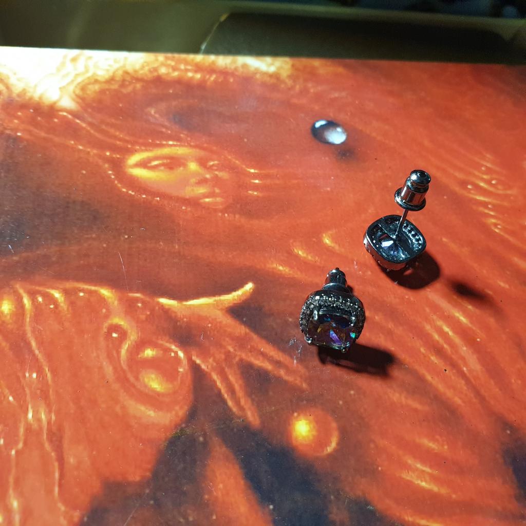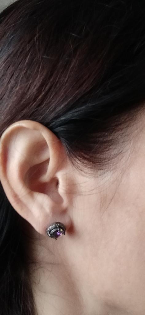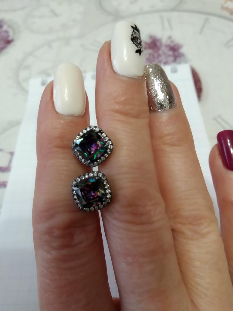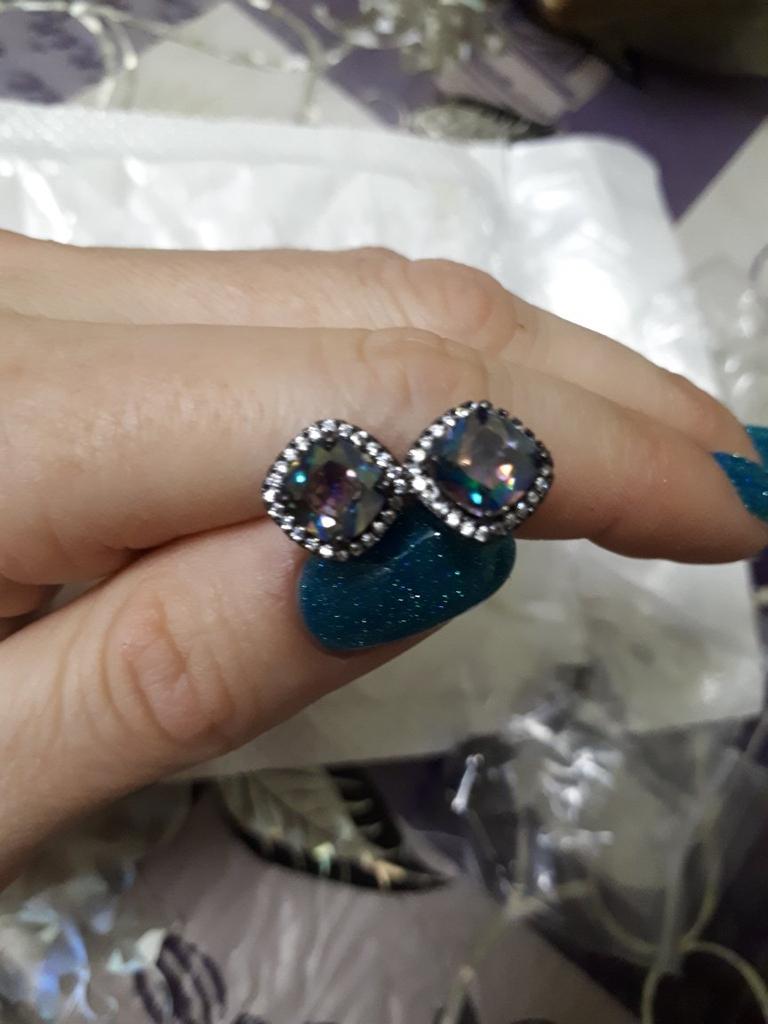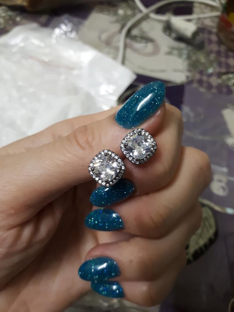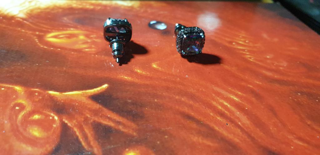Black Gold Color Princess Cut Blue Black White Purple Multicolor Stone Stud Earrings Wedding Engagement Rainbow Birthstone Earrings
