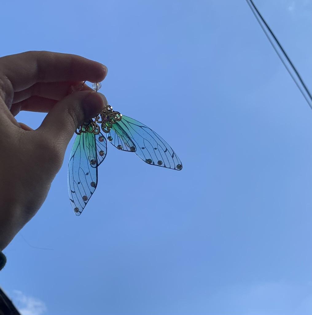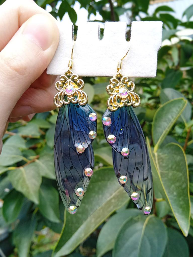 Fashion Women Jewelry Elegant Drop Earrings Long Cicada Wing Shape Earrings