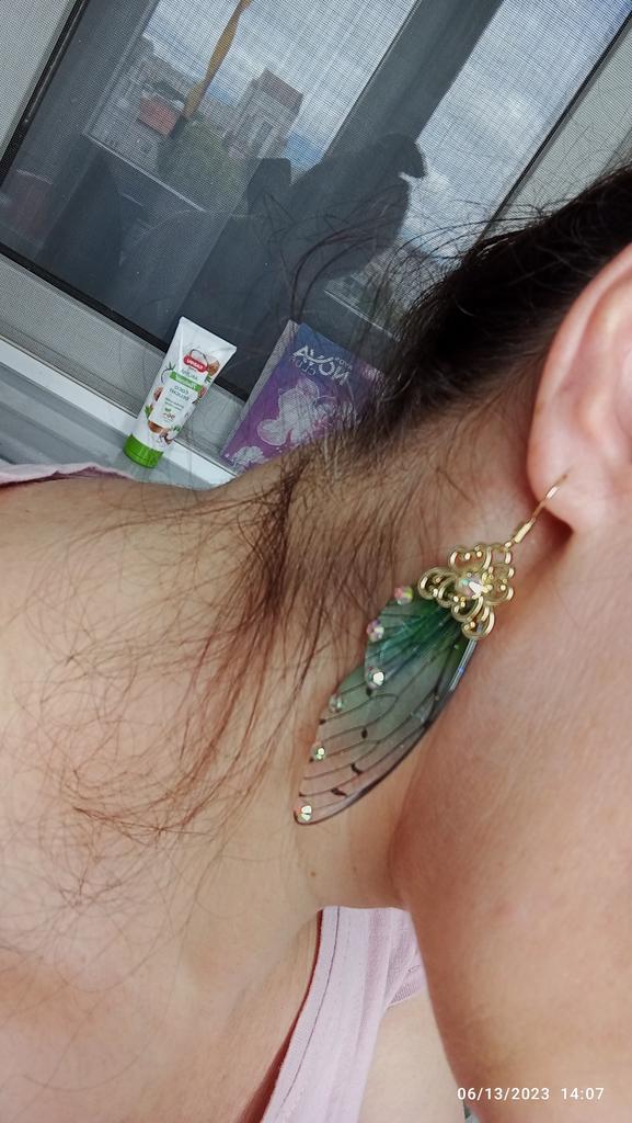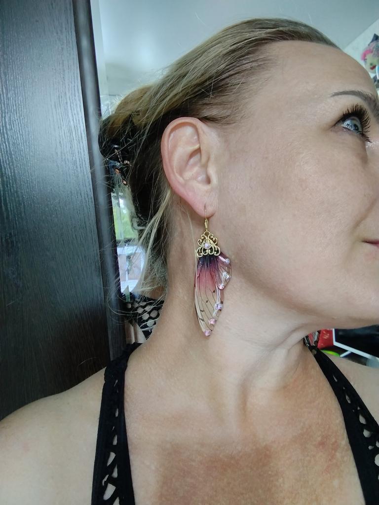 Strong, the wings themselves are about 5-6 cm, the sun's rays play with the balls, making them shimmer.