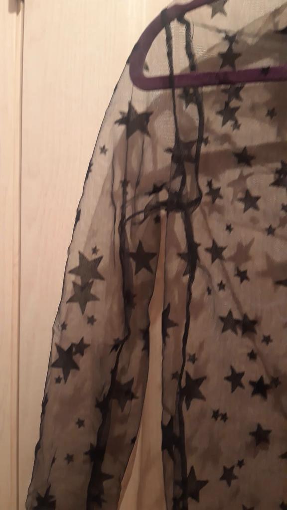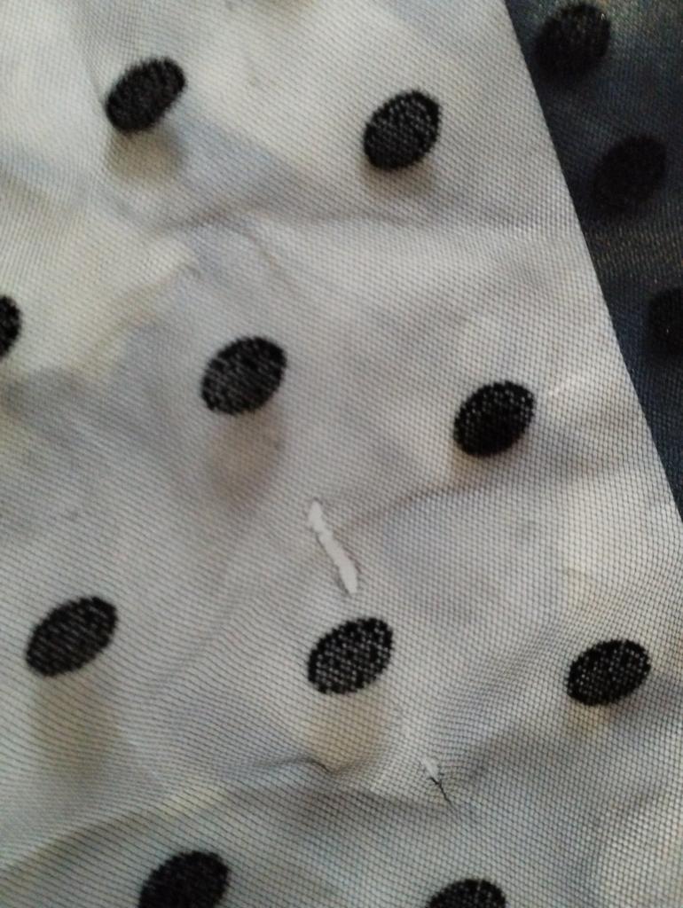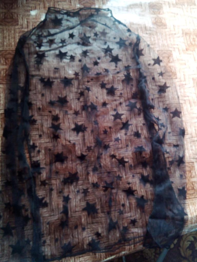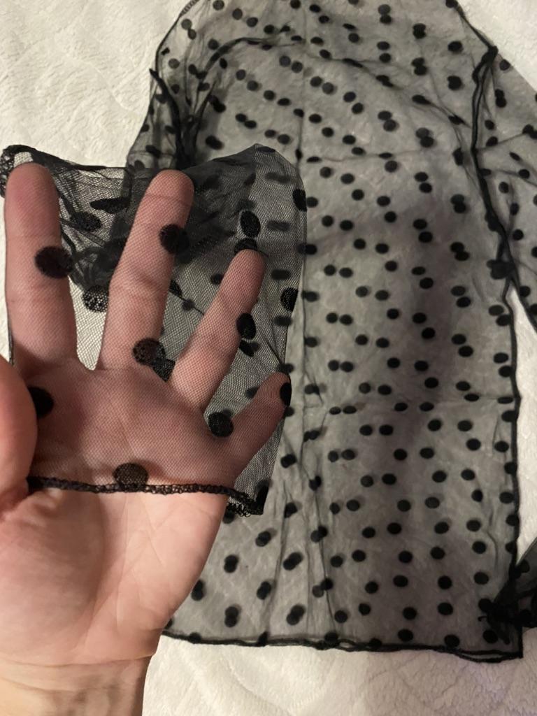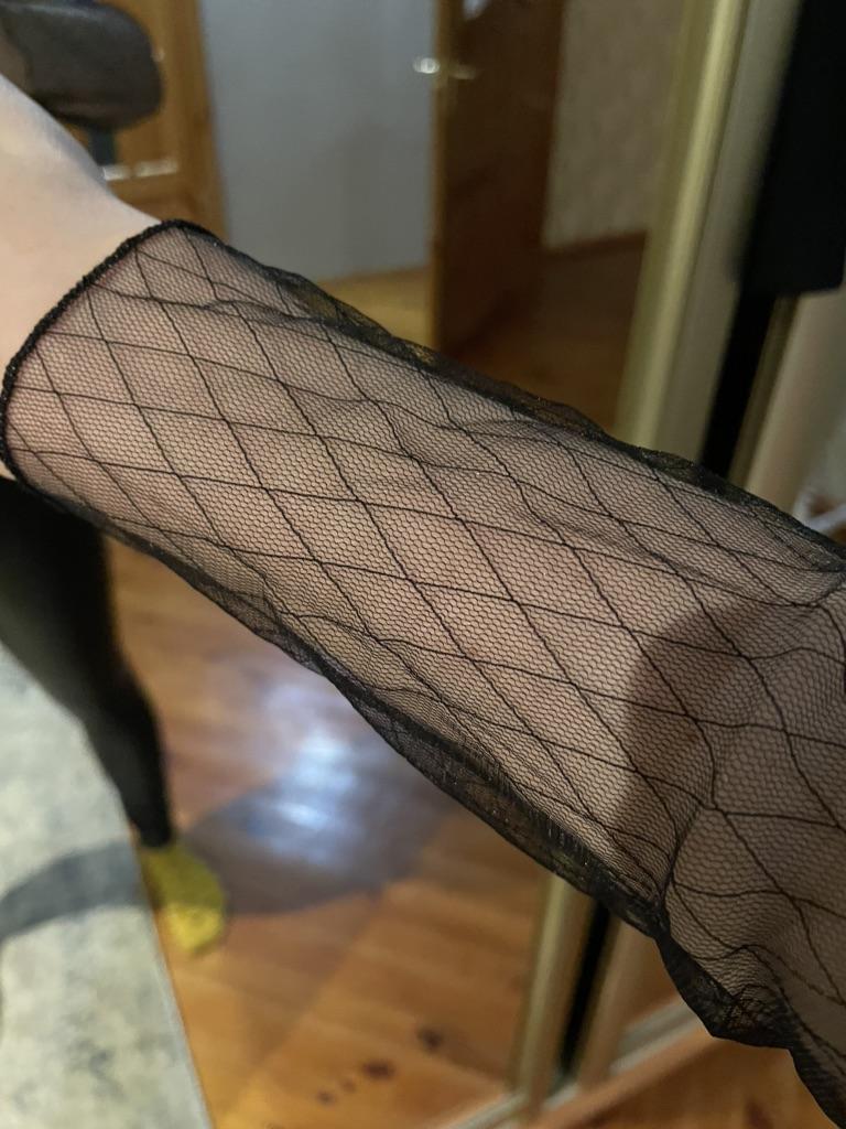 Very, very thin mesh, almost weightless. It is sewn so that there is no difference between the front and the back, because of this it writhes near the neck.