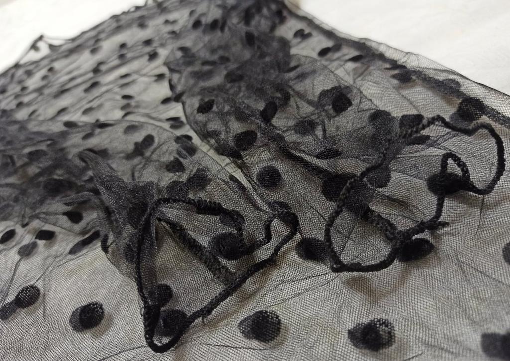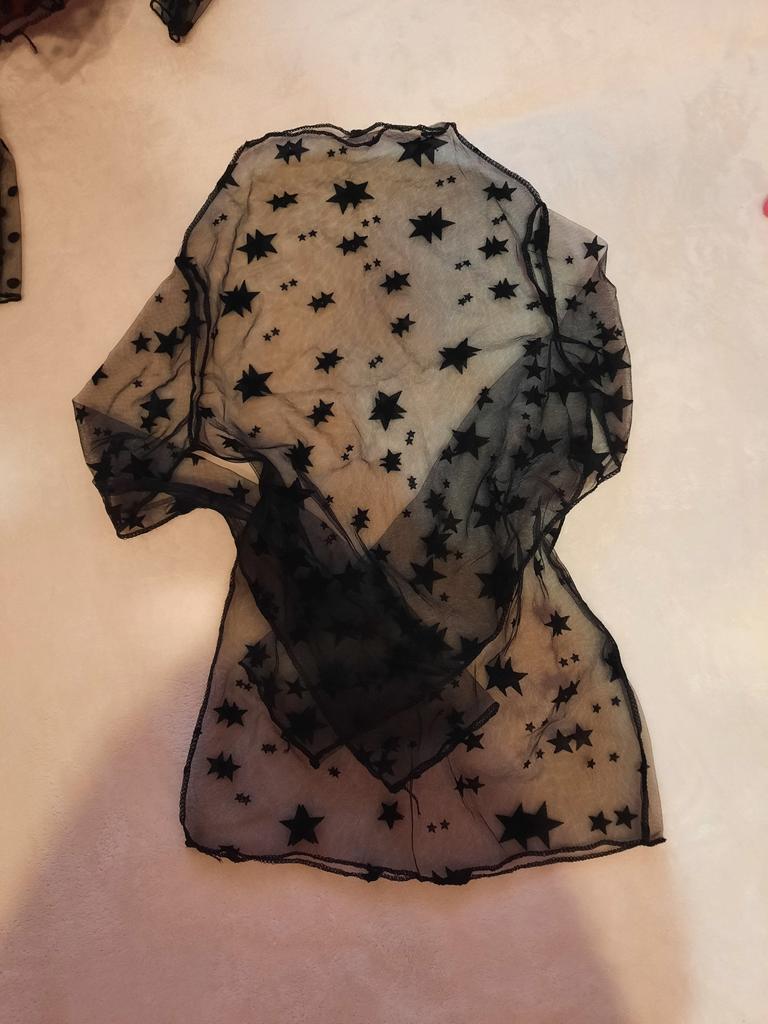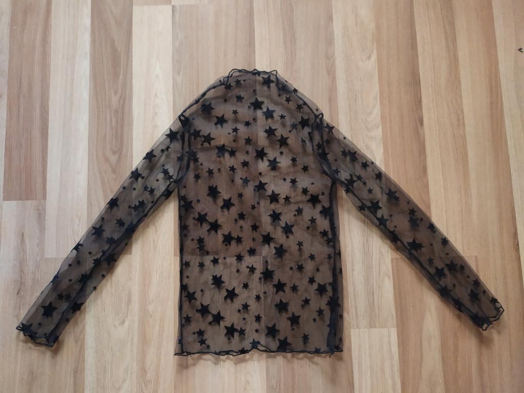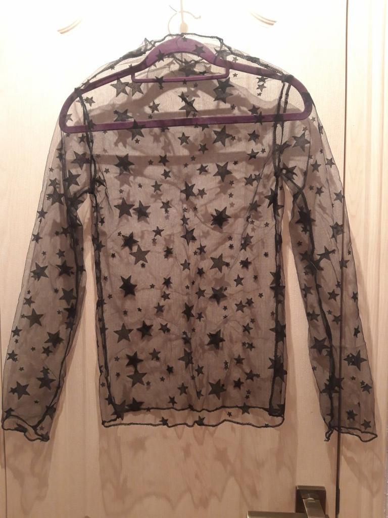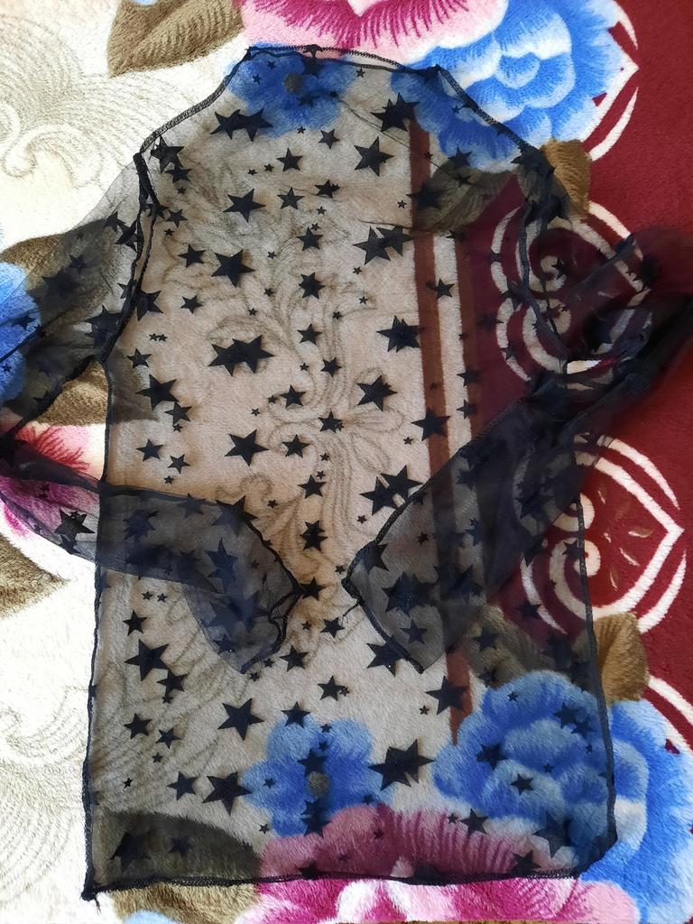 Very, very thin mesh, almost weightless. It is sewn so that there is no difference between the front and the back, because of this it writhes near the neck.
