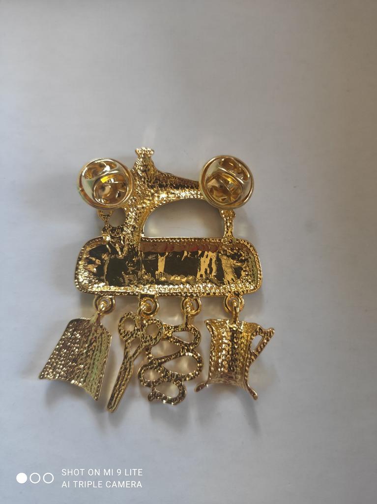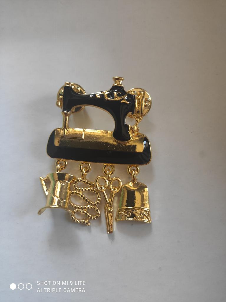 Vintage Style Sartorius Sewing Machine Brooch Pins In Gold Color Plated