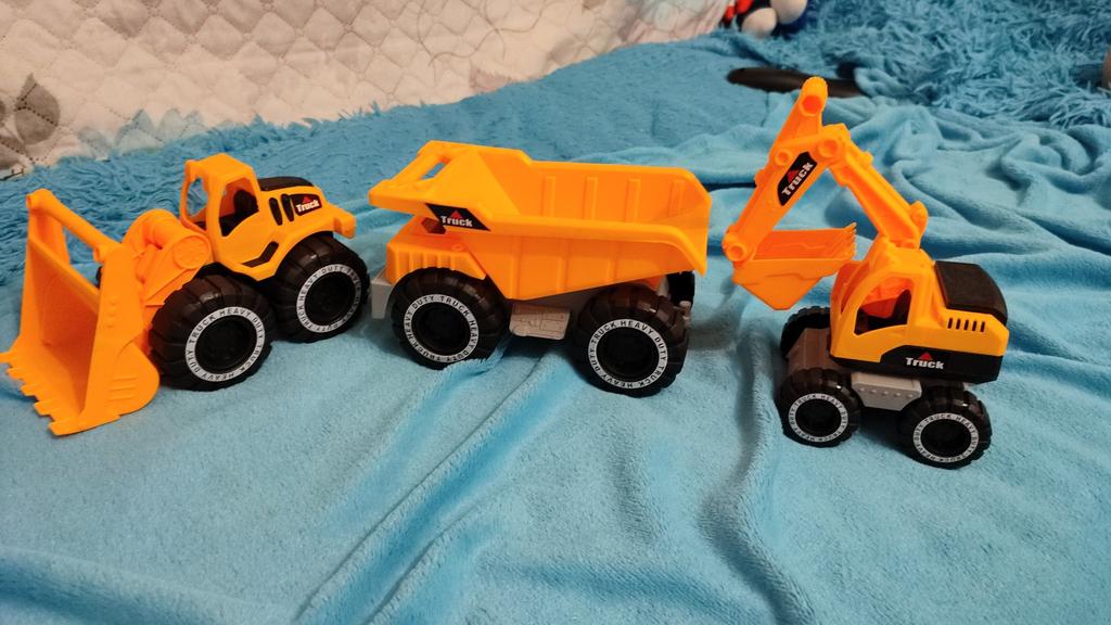 Out of three items, two are broken, but I threw away the packaging. So it's my fault. I wanted to glue them, but it didn't work. I threw away the excavator and the truck.