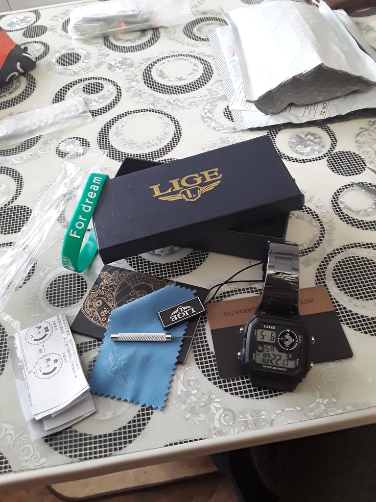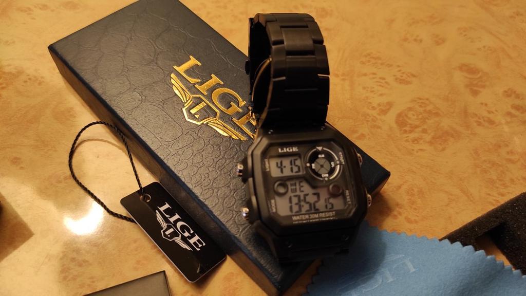 LIGE Men's Digital Watch for Men Multi Function Luminous Waterproof Sports Quartz Wristwatch LED Dual Display Square Dial Electronic Watches