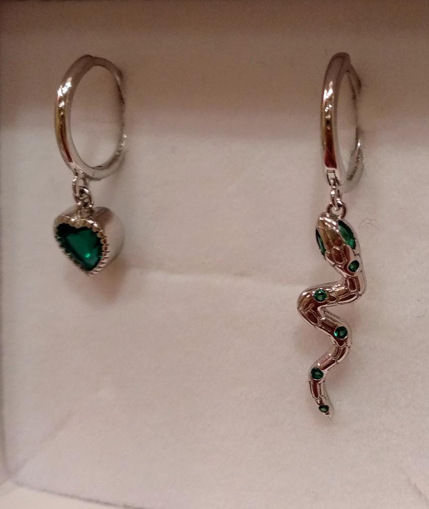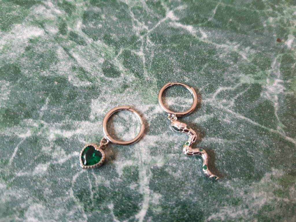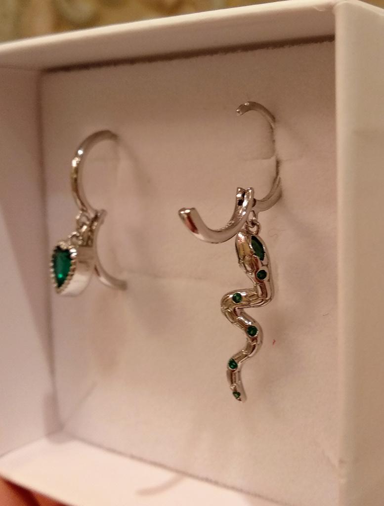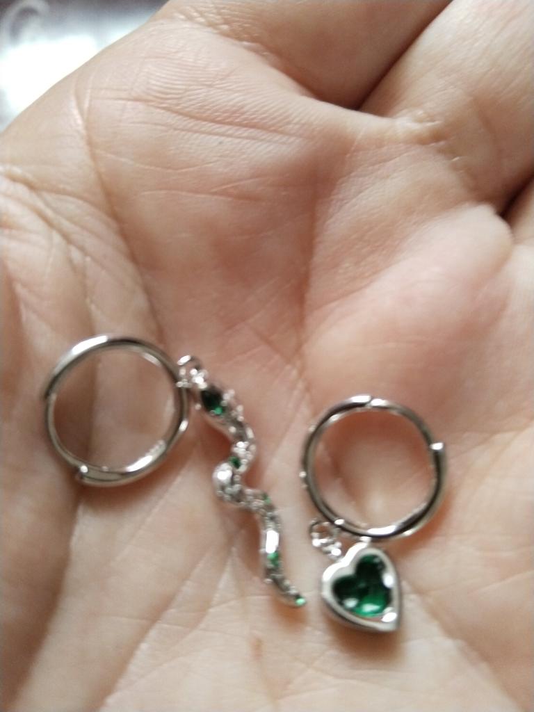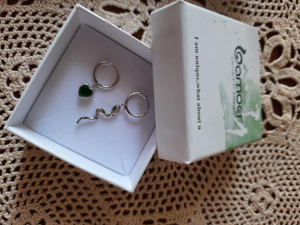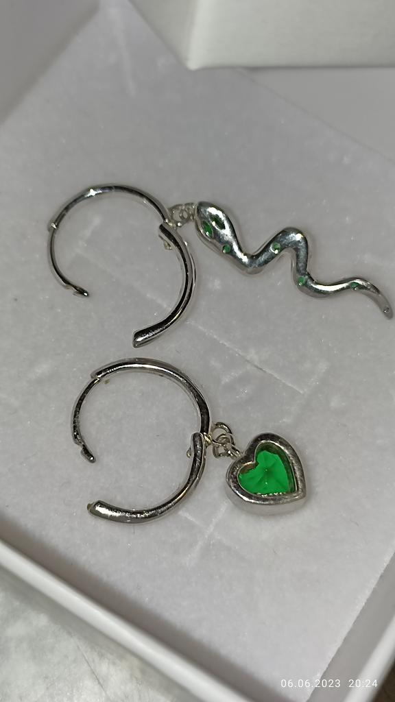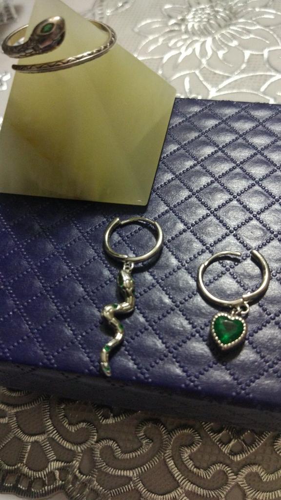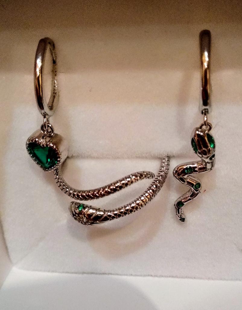 I took it as a gift, but when I took them in my hands, I kept them for myself :) Earrings here are a little snake and a heart. In addition, "to the set" took two rings in the form of snakes. 925 silver, there is a sample on each product, pleasant to the touch and nice to look at :)