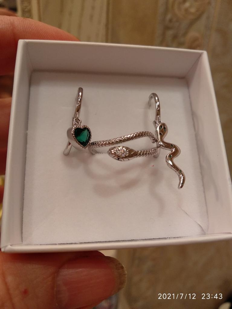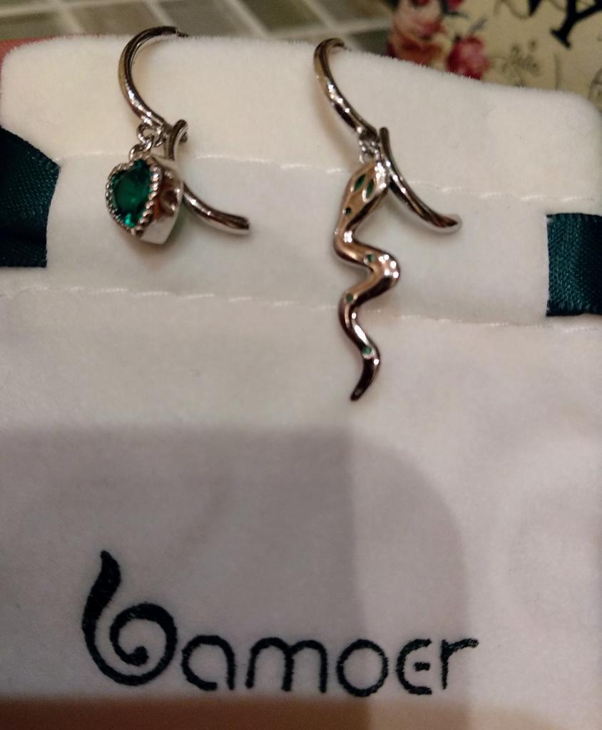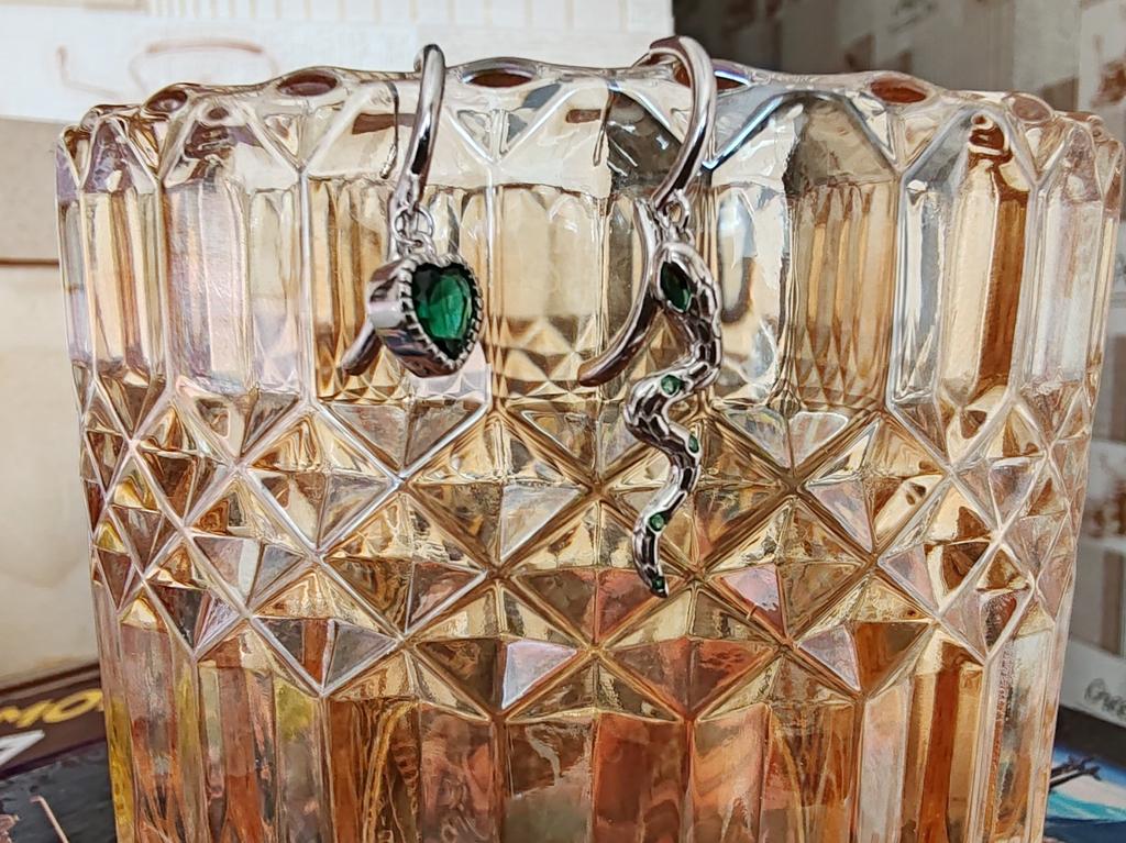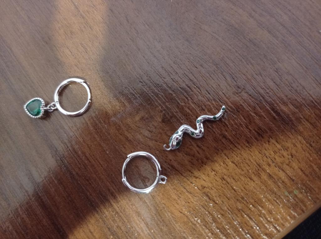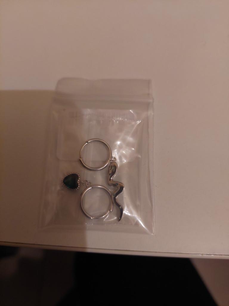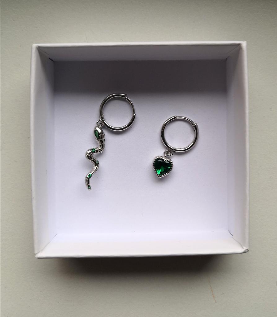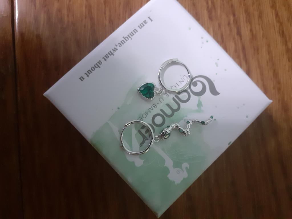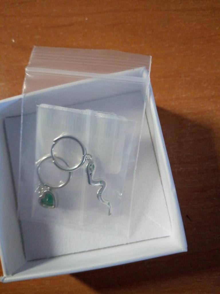 I took it as a gift, but when I took them in my hands, I kept them for myself :) Earrings here are a little snake and a heart. In addition, "to the set" took two rings in the form of snakes. 925 silver, there is a sample on each product, pleasant to the touch and nice to look at :)