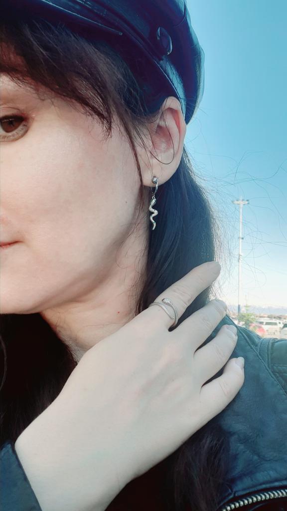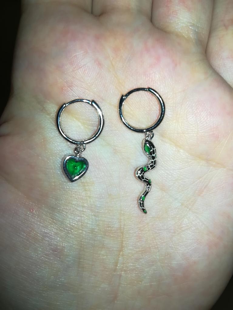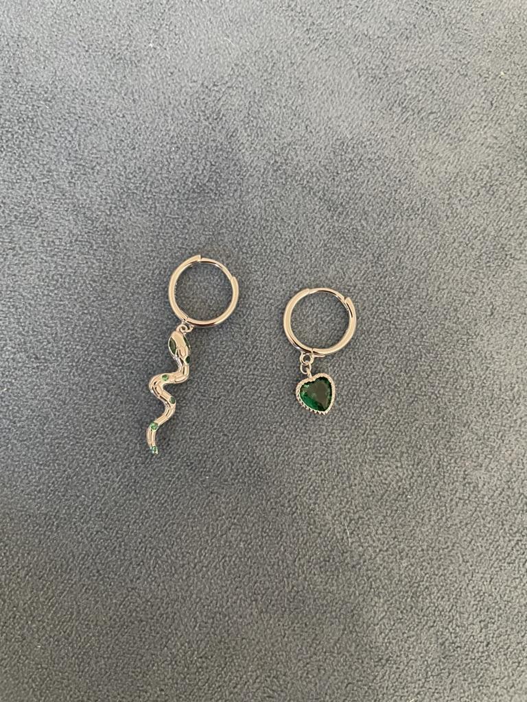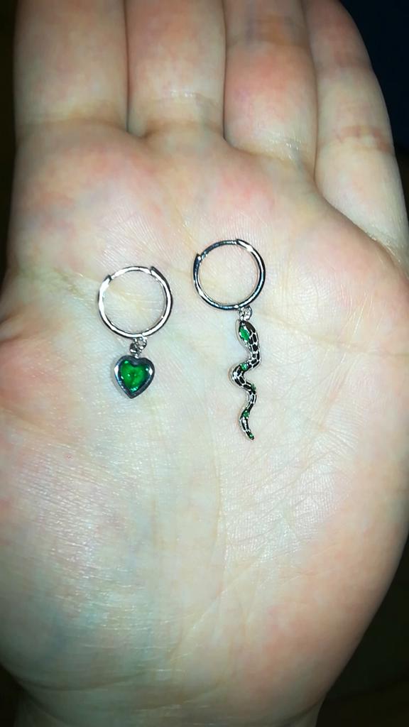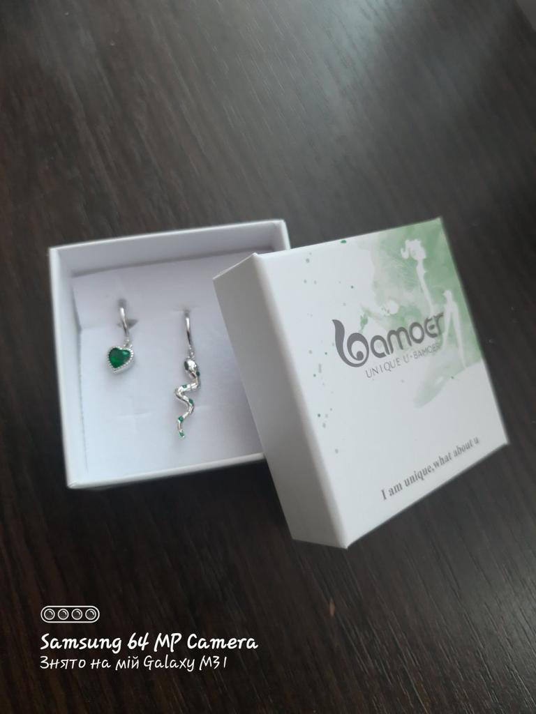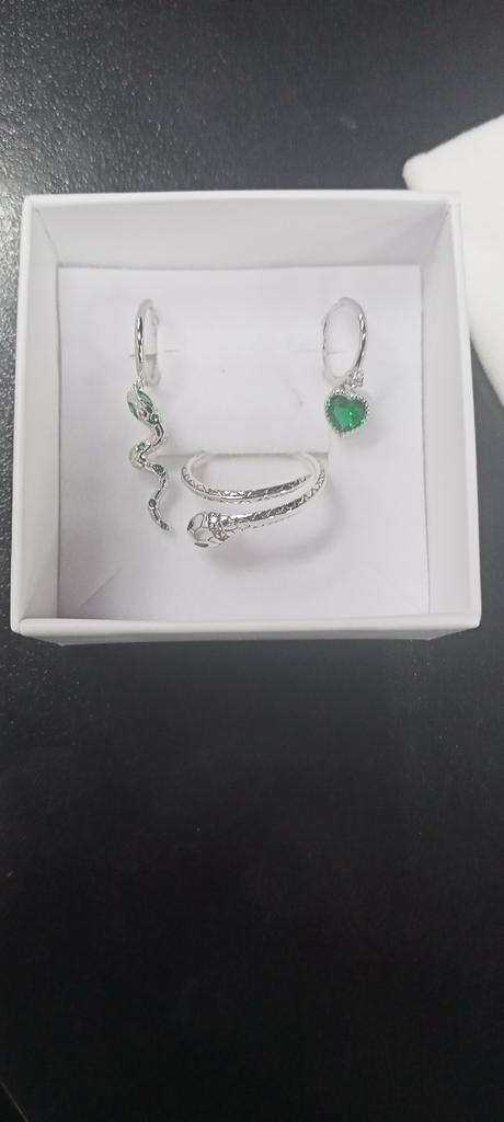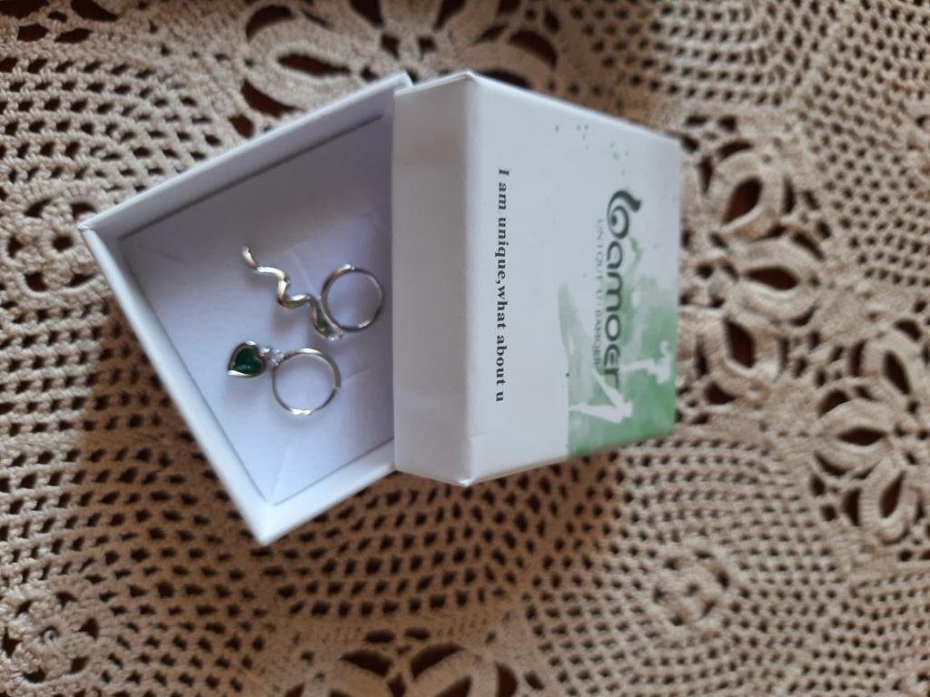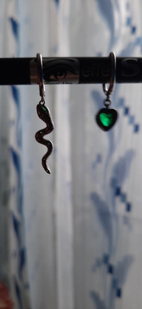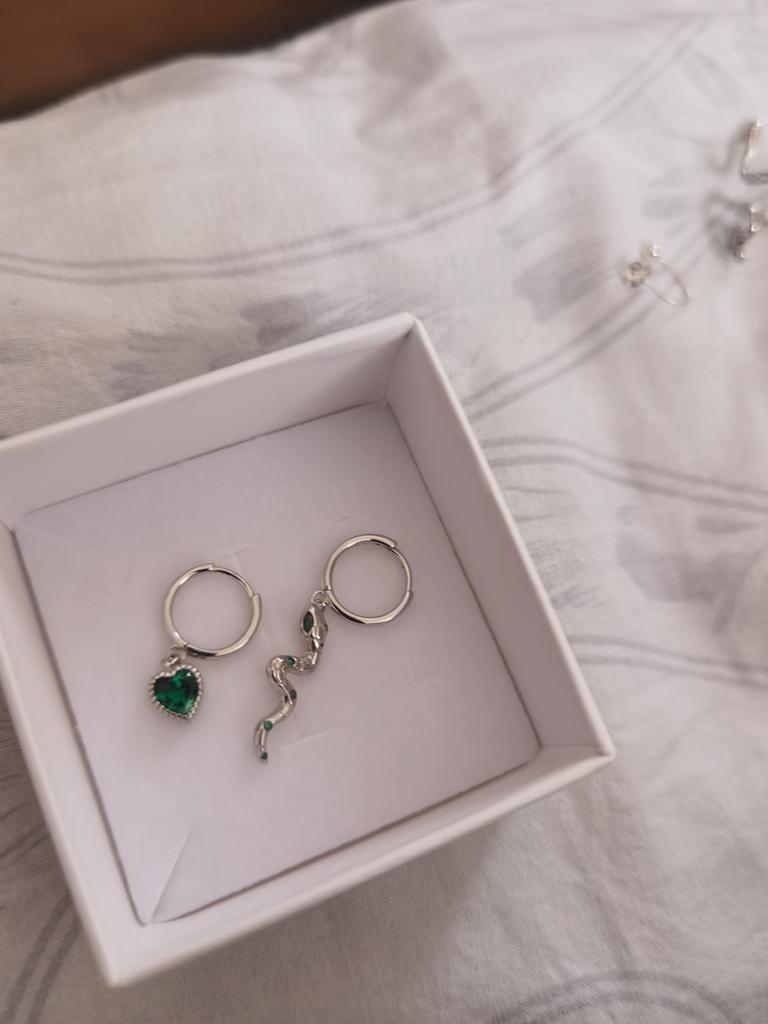 I took it as a gift, but when I took them in my hands, I kept them for myself :) Earrings here are a little snake and a heart. In addition, "to the set" took two rings in the form of snakes. 925 silver, there is a sample on each product, pleasant to the touch and nice to look at :)