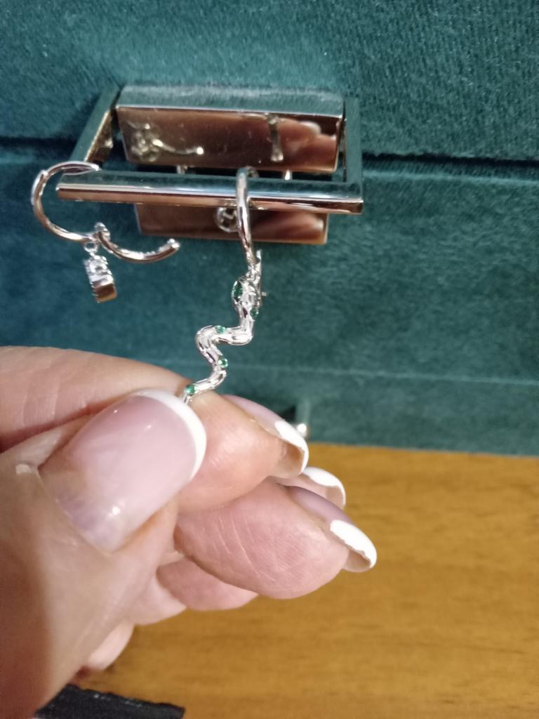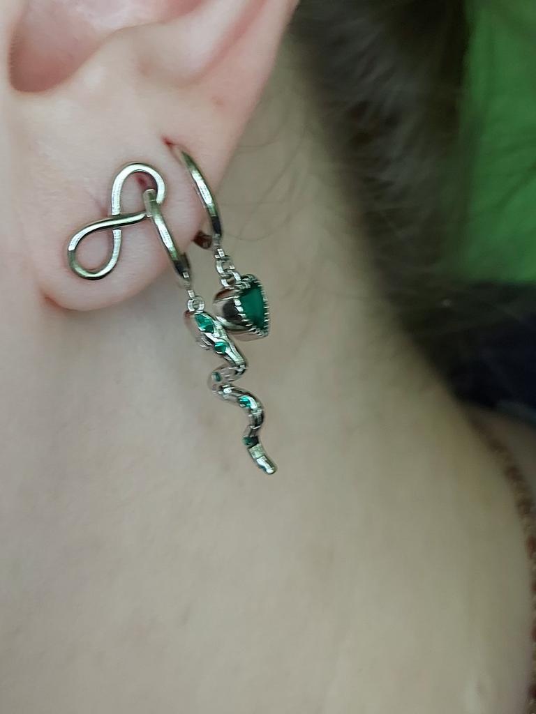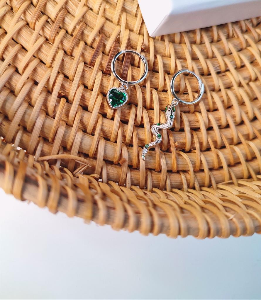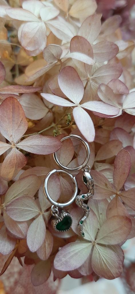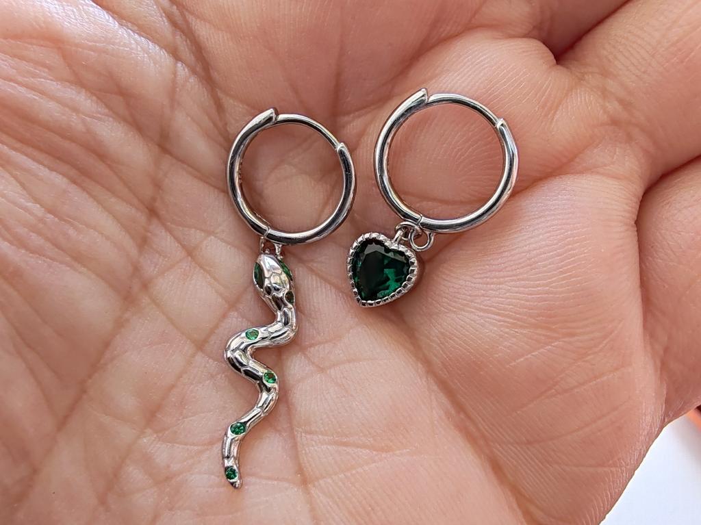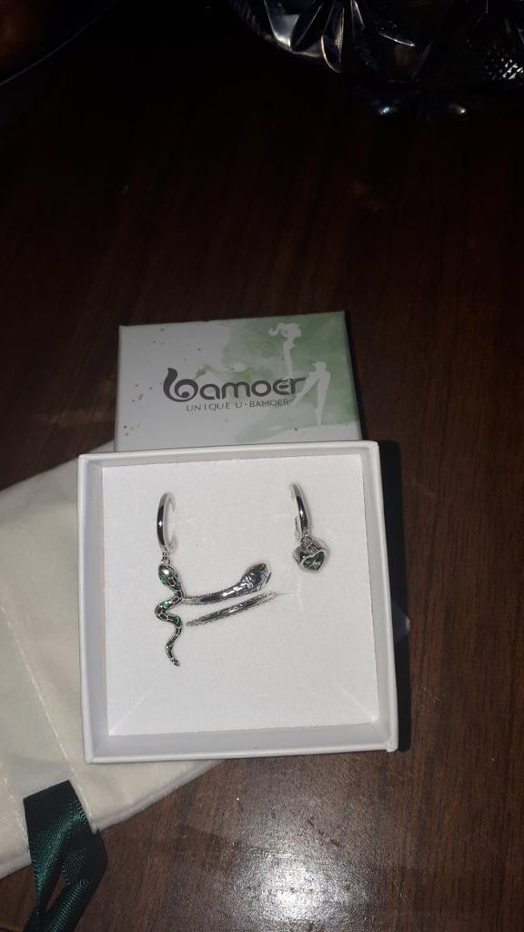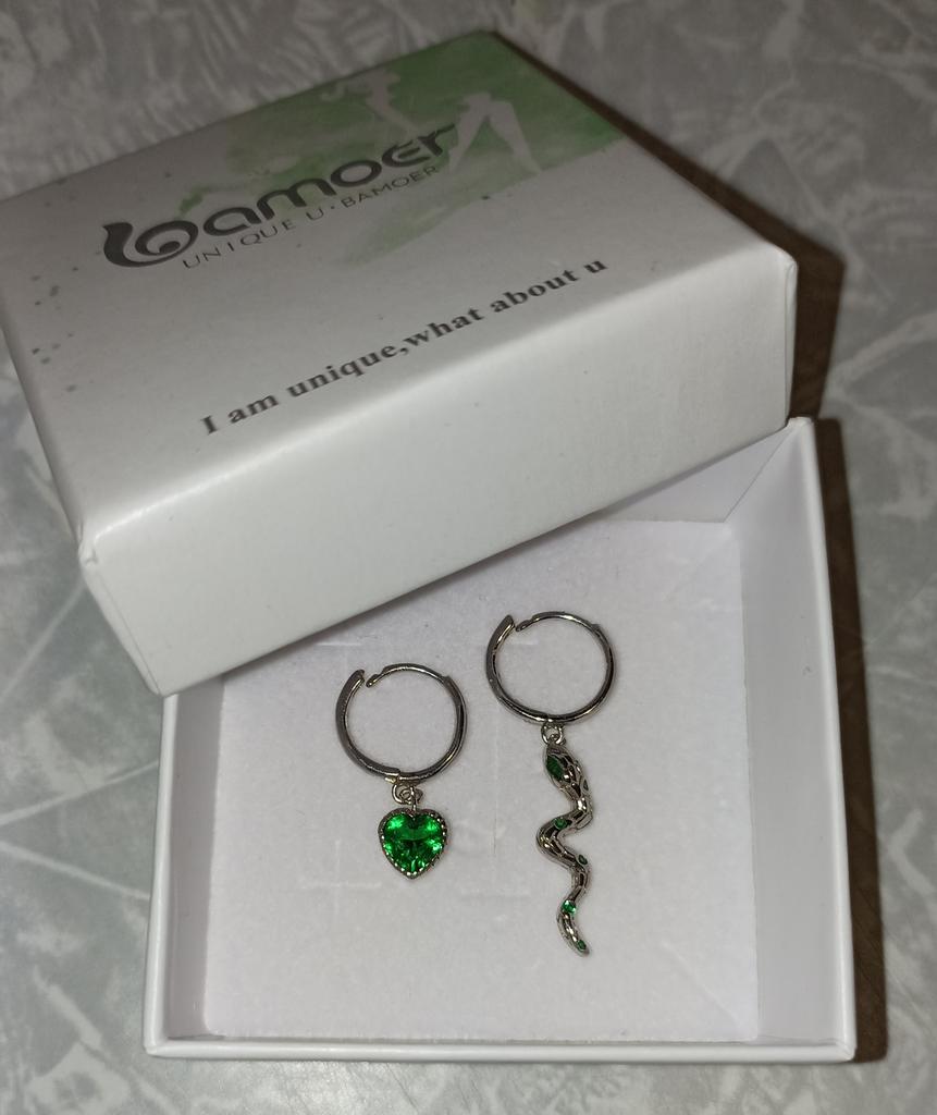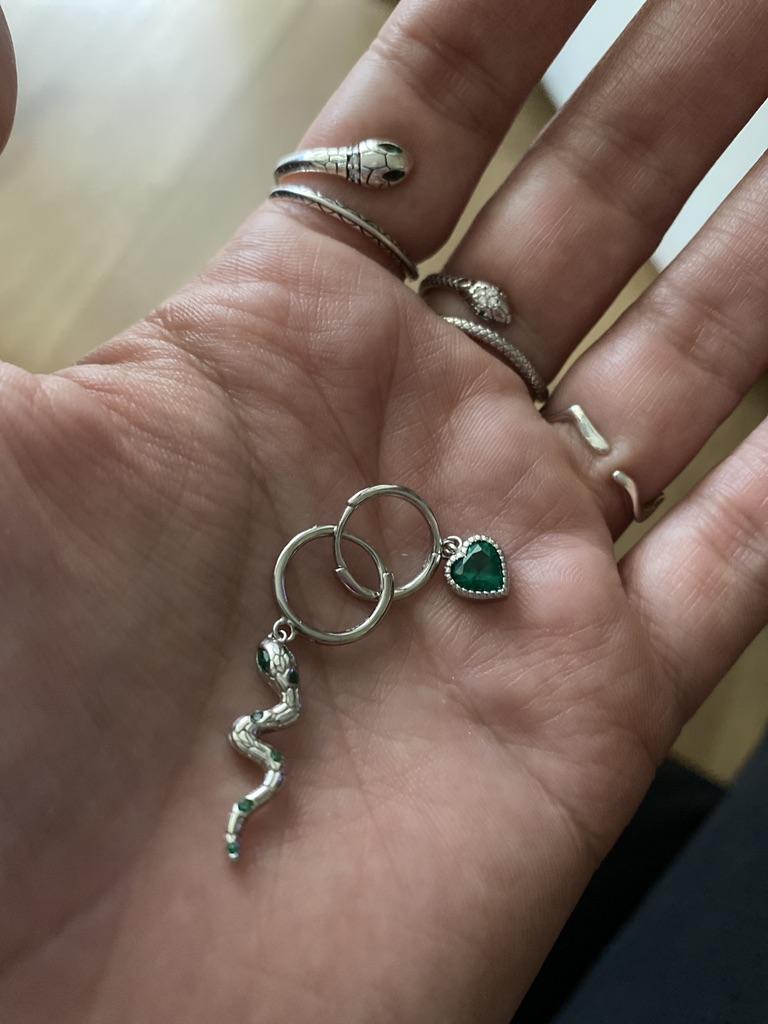 I took it as a gift, but when I took them in my hands, I kept them for myself :) Earrings here are a little snake and a heart. In addition, "to the set" took two rings in the form of snakes. 925 silver, there is a sample on each product, pleasant to the touch and nice to look at :)