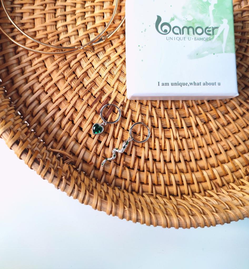 BAMOER Love Of Snake Earring Real 925 Sterling Silver Green CZ Hoop Earrings For Women Wedding Fine Jewelry