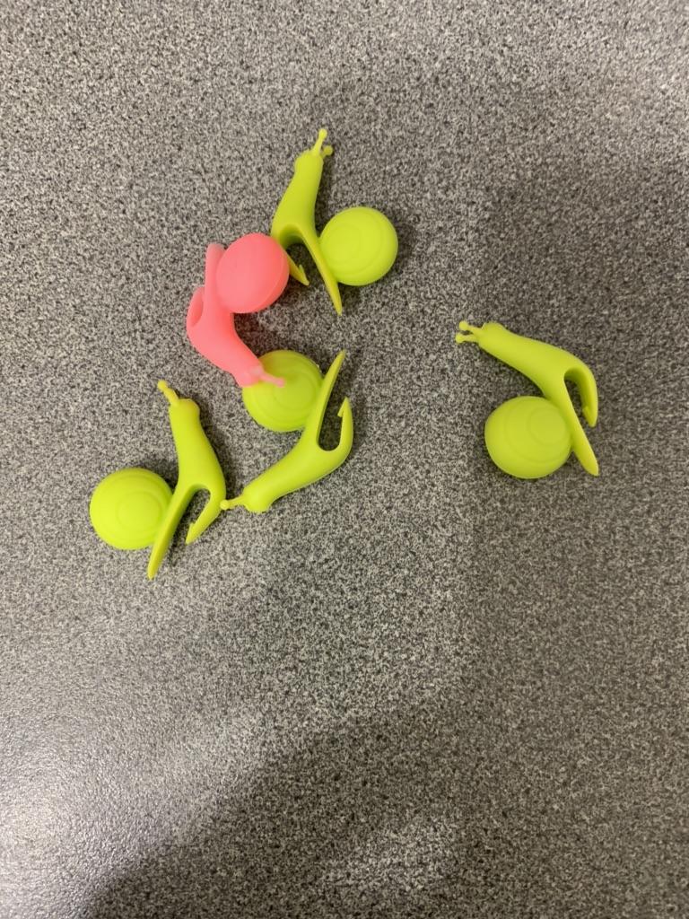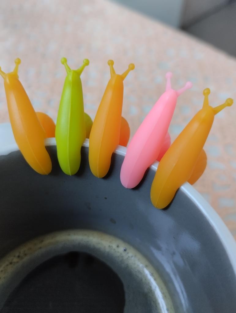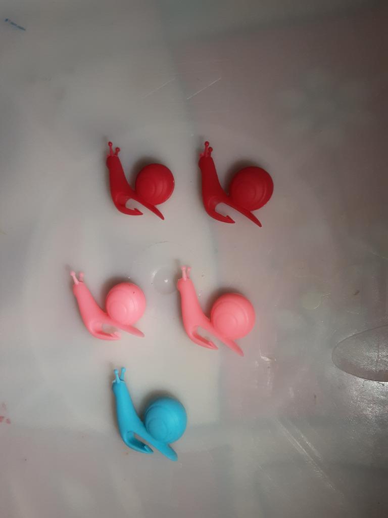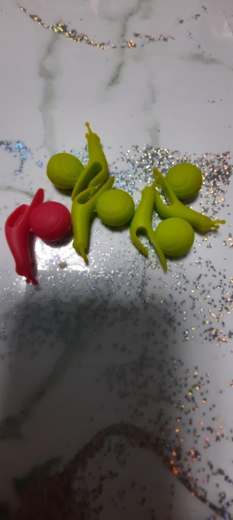 Cute little silicone snails, but out of 5 pieces they put 1 blue and 4 yellow ones, although there was a different color of the snail (they could have put at least 2 pieces of a different color)