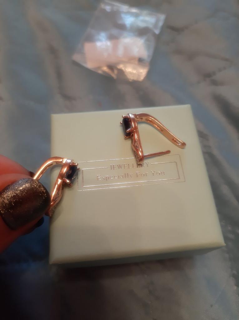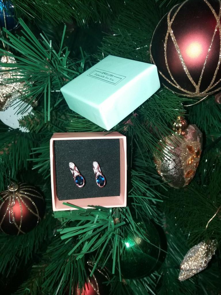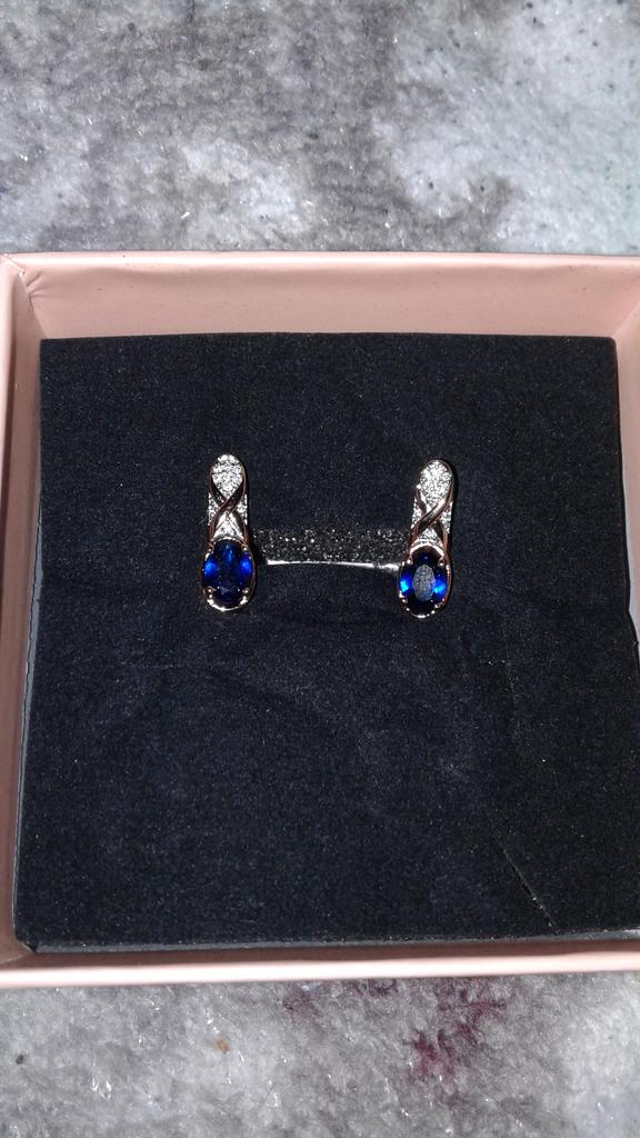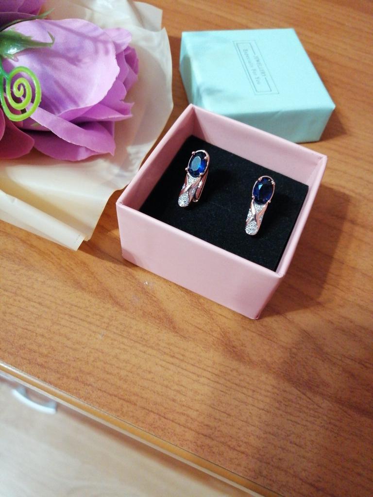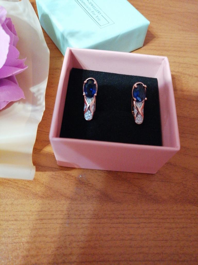 Gorgeous earrings from Umcho with budget price tag.Made from copper,with rose gold coating.Interesting design with dark blue and clear crystals.The are perfect size,very light and sit well in the ear.Came with presentation box in 3 weeks to Ireland.Happy Shopping!