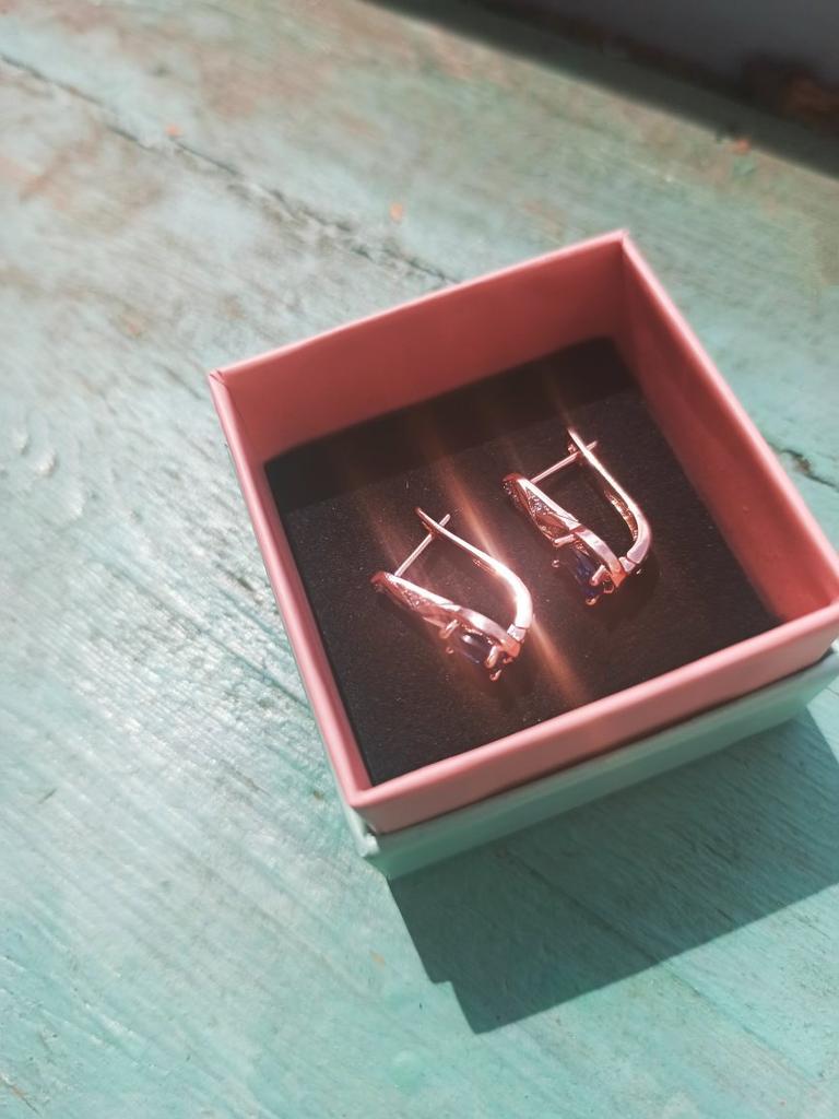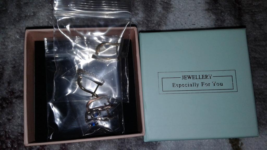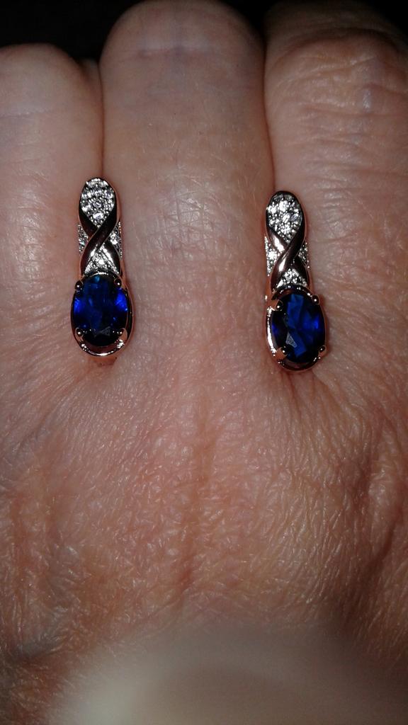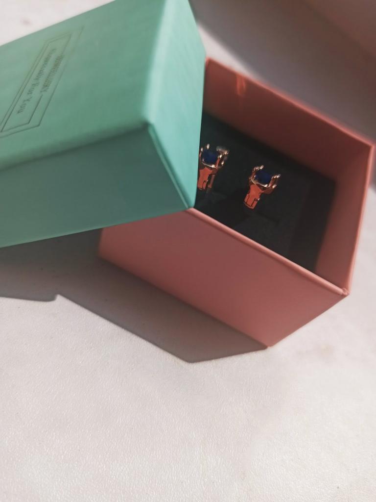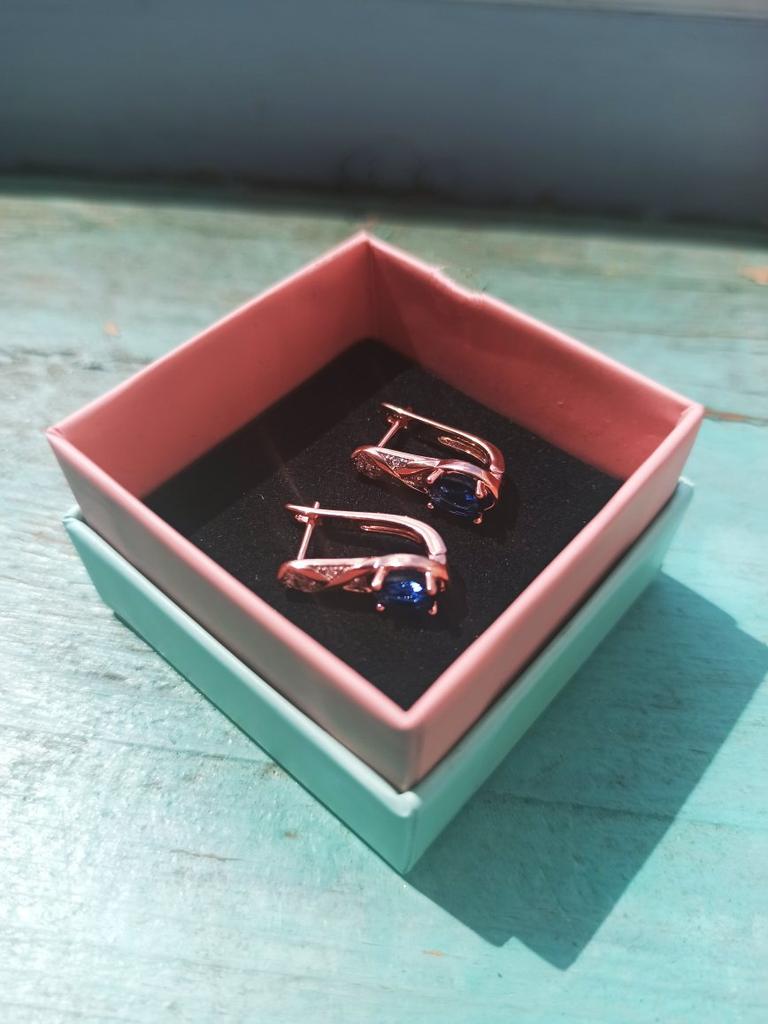 Gorgeous earrings from Umcho with budget price tag.Made from copper,with rose gold coating.Interesting design with dark blue and clear crystals.The are perfect size,very light and sit well in the ear.Came with presentation box in 3 weeks to Ireland.Happy Shopping!