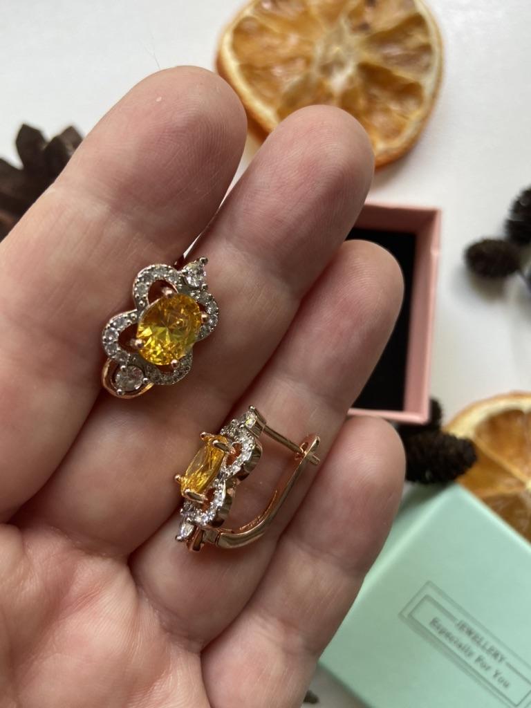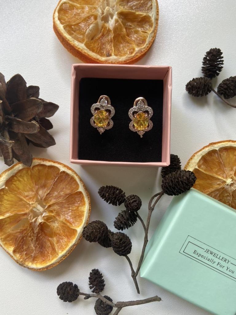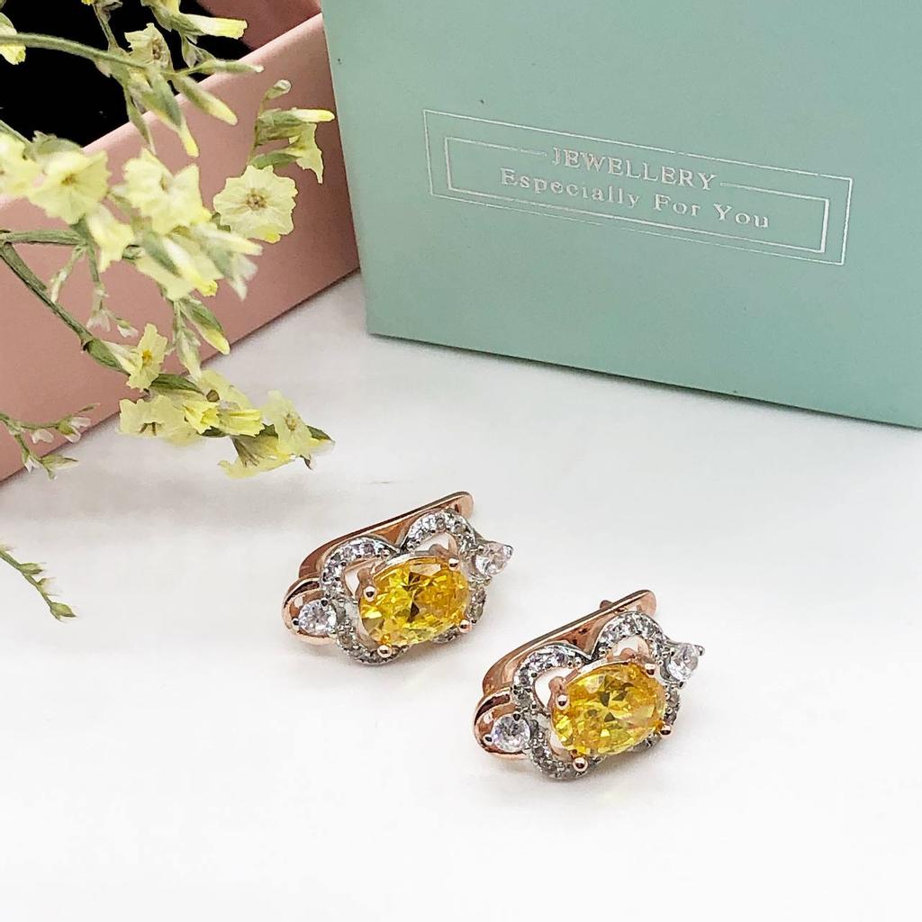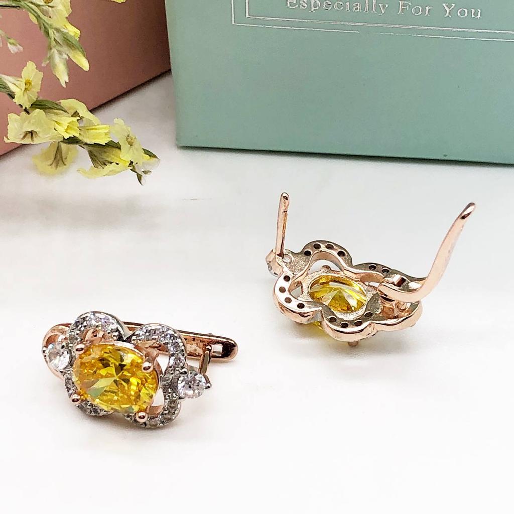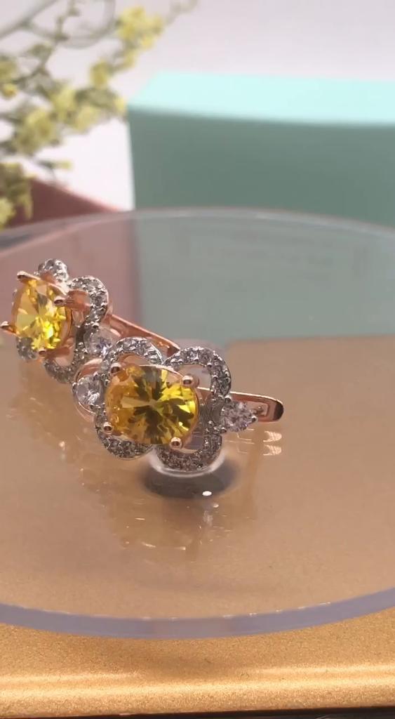 Vintage Rose Gold Separation 8-figure Garland Yellow Zirconium Clip Earrings