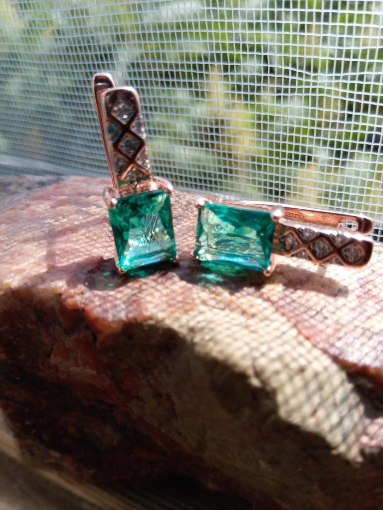 Copper Rose Gold Plated Inlaid Geometry Green Female Earrings