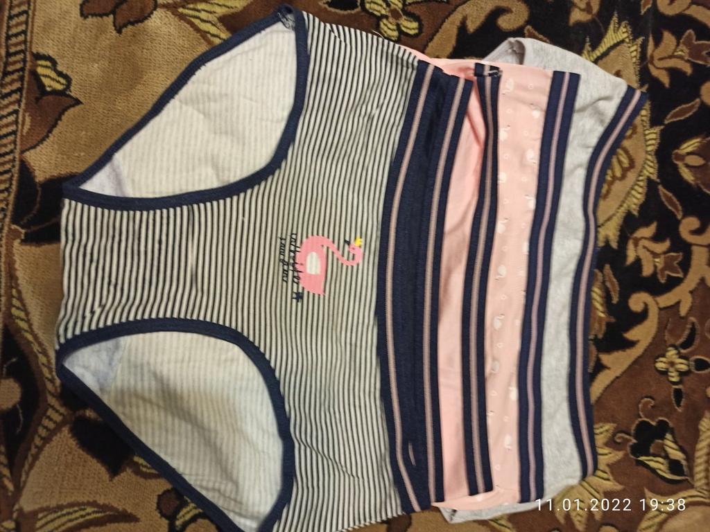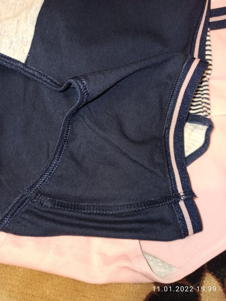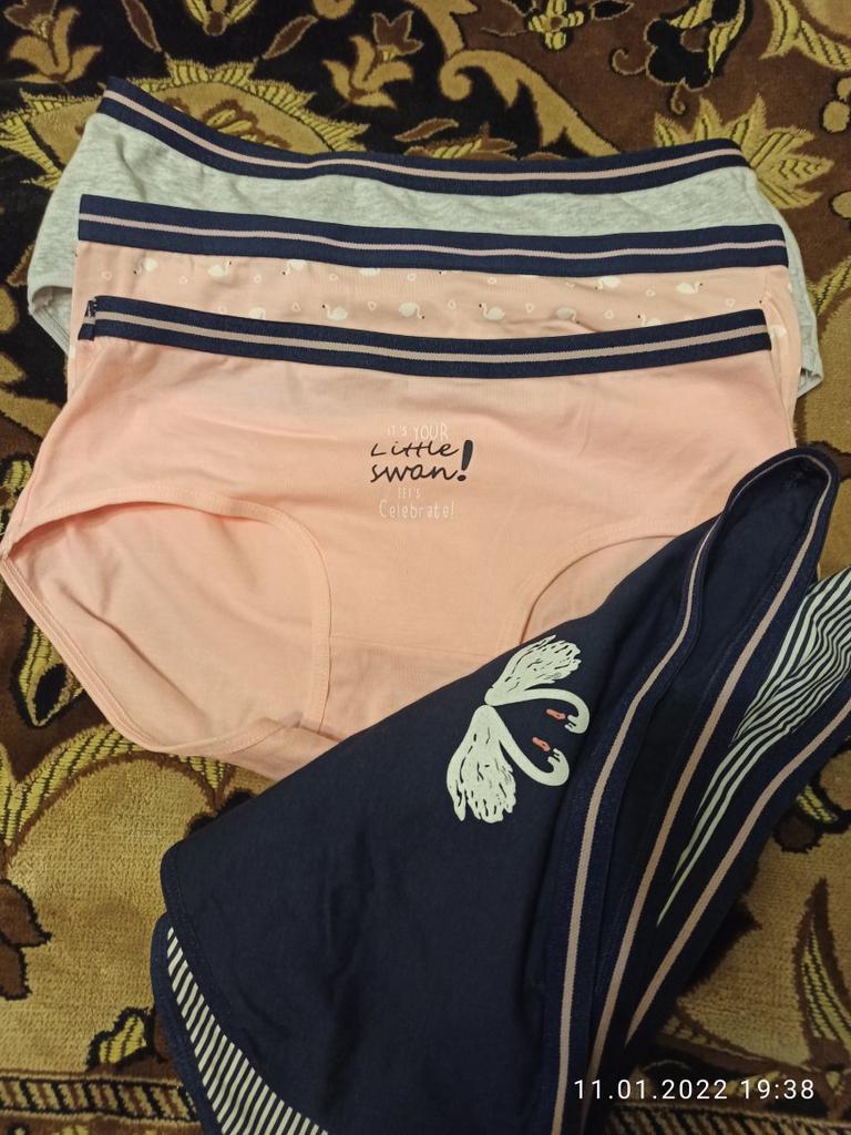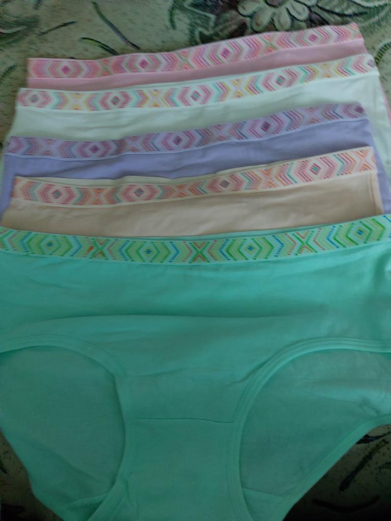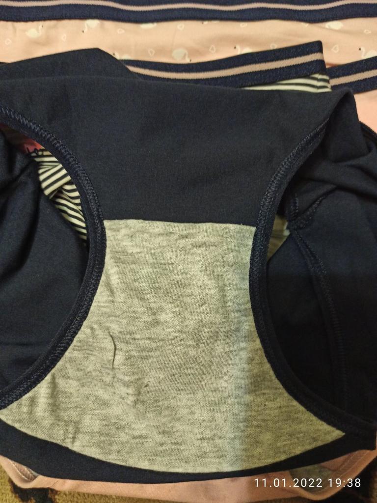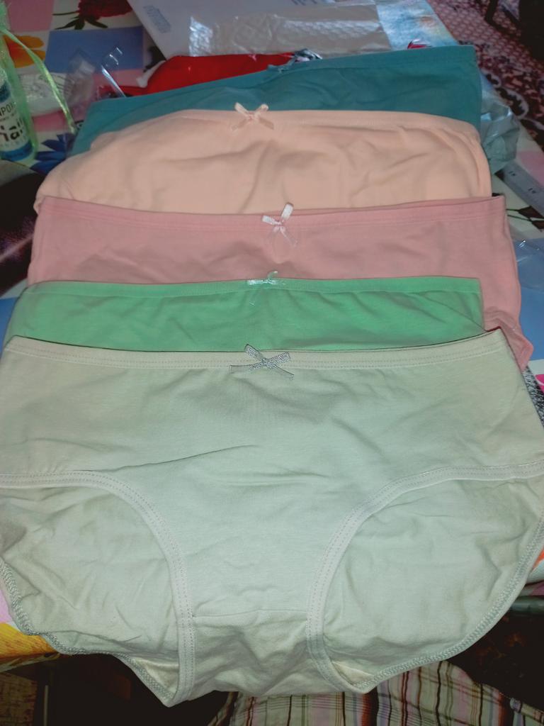 The order took almost a month. The material is black, not very thin, they do NOT shine through (unless you pull it on the ass not by size, but more). Top quality! The colors are saturated as in the photo. Perfect fit for OB 106 cm! I have plump legs, so when I tried on one of the five panties, they were a little tighter on my legs, but not critical. A very comfortable and beautiful set of panties for a great price. Very satisfied, I recommend! The photos were taken in different lighting conditions. Thanks to the seller and JOOM 💛 💙
