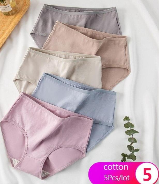 LANGSHA 5Pcs Cotton Panties Women Underwear Breathable Cute Print Briefs Female Fashion Lingerie XXL