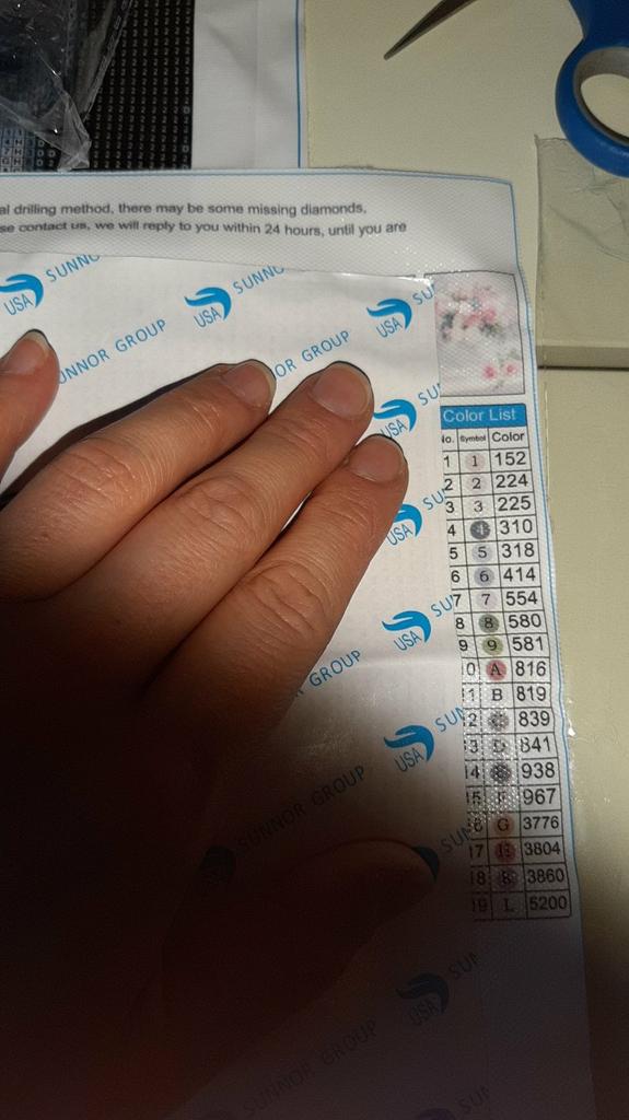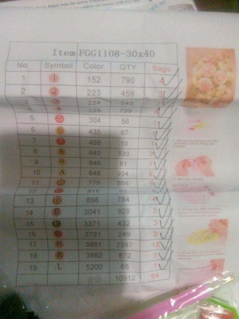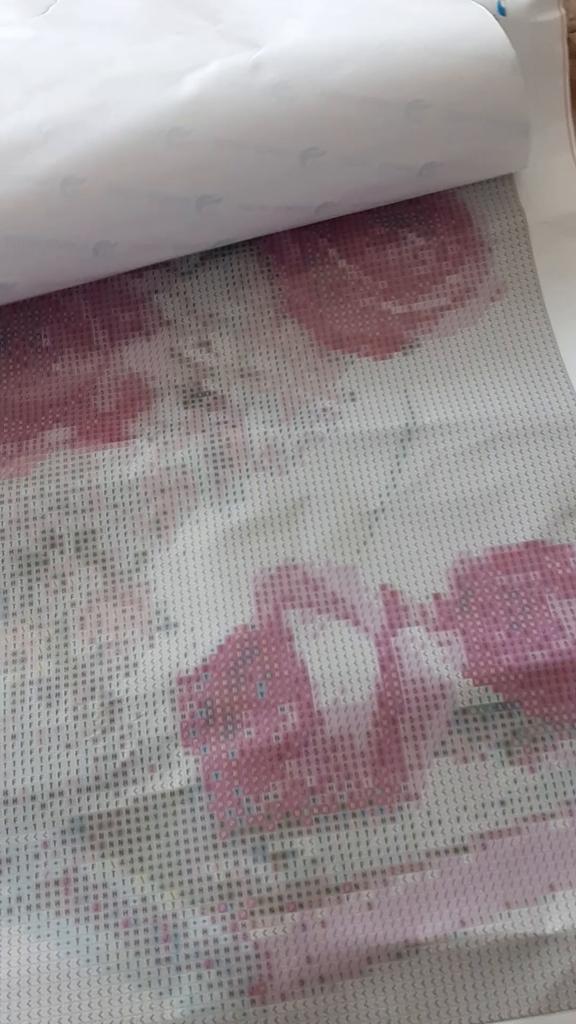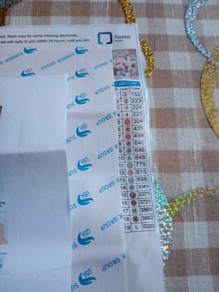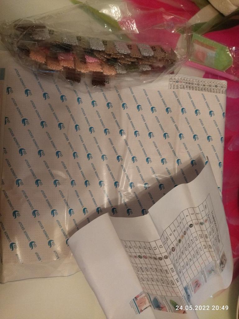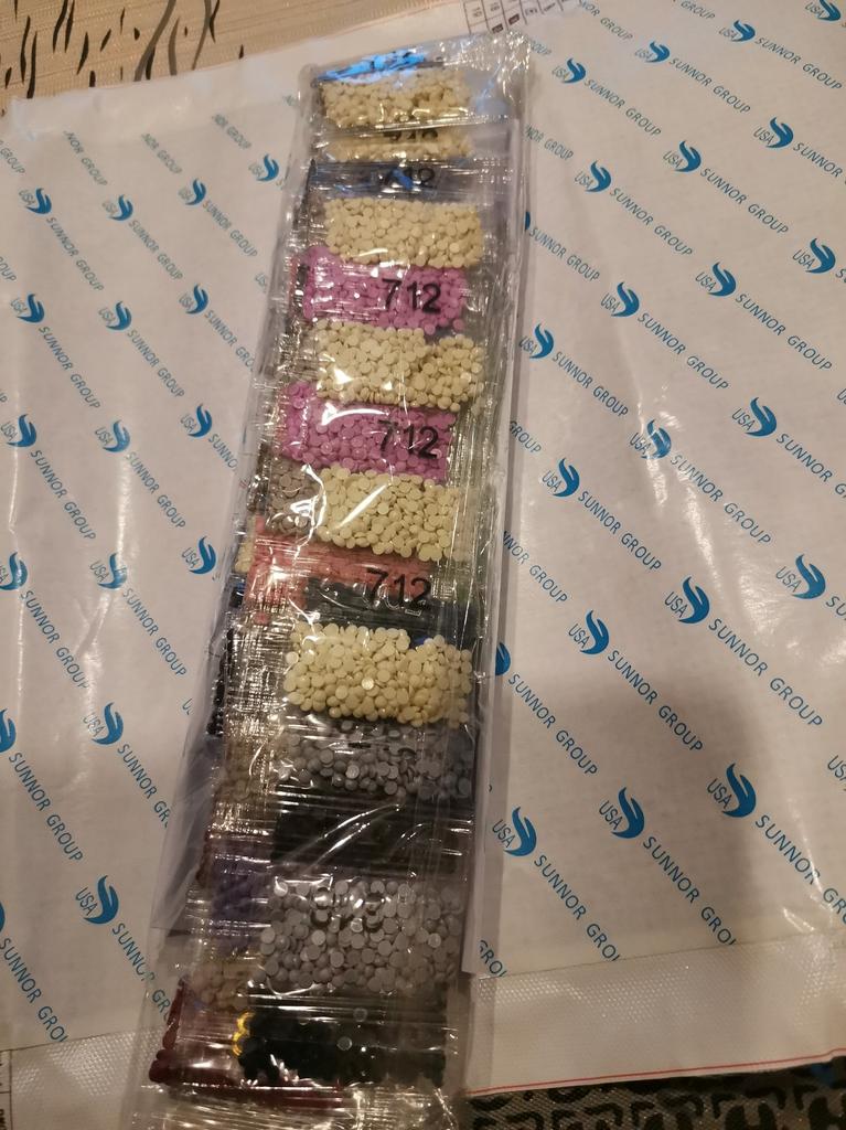 Everything arrived on time. The picture is a little crumpled, but it straightened out under the press. šø The scheme is printed with high quality. šø All colors are available, their colors match. šø The set also includes a pen for laying out, dry glue, a plate, and 4 zip bags. There seem to be a lot of pebbles, so I hope there will be enough of them. The picture is finished. It turned out quite cute. There are still many diamonds left