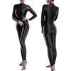 Women's One-Piece Shiny Long Sleeves Double Zipper Smooth Leotard Bodysuit Jumpsuit Catsuit