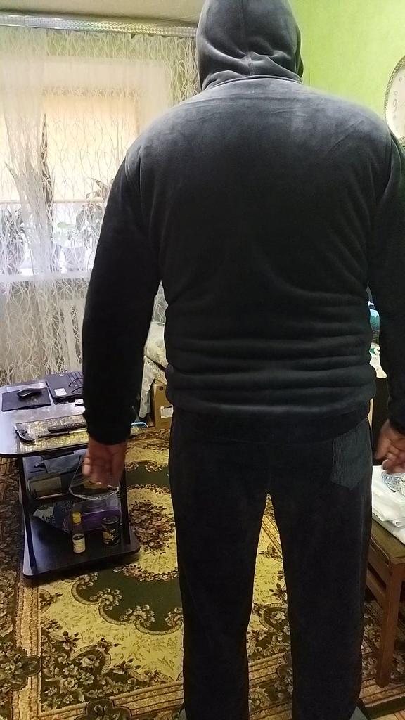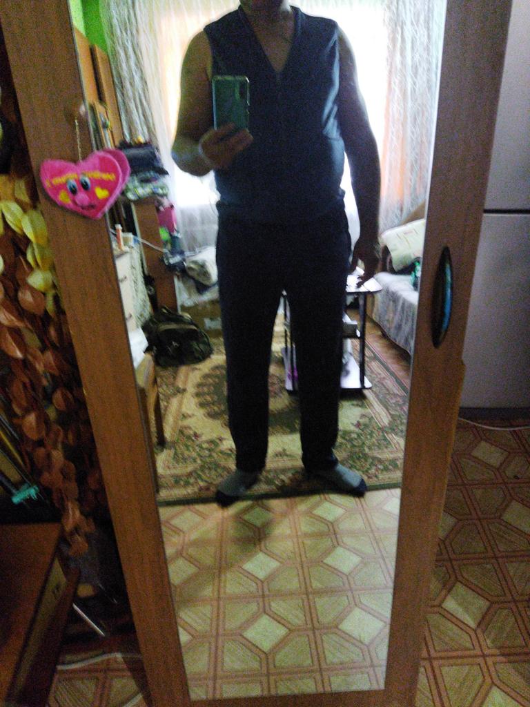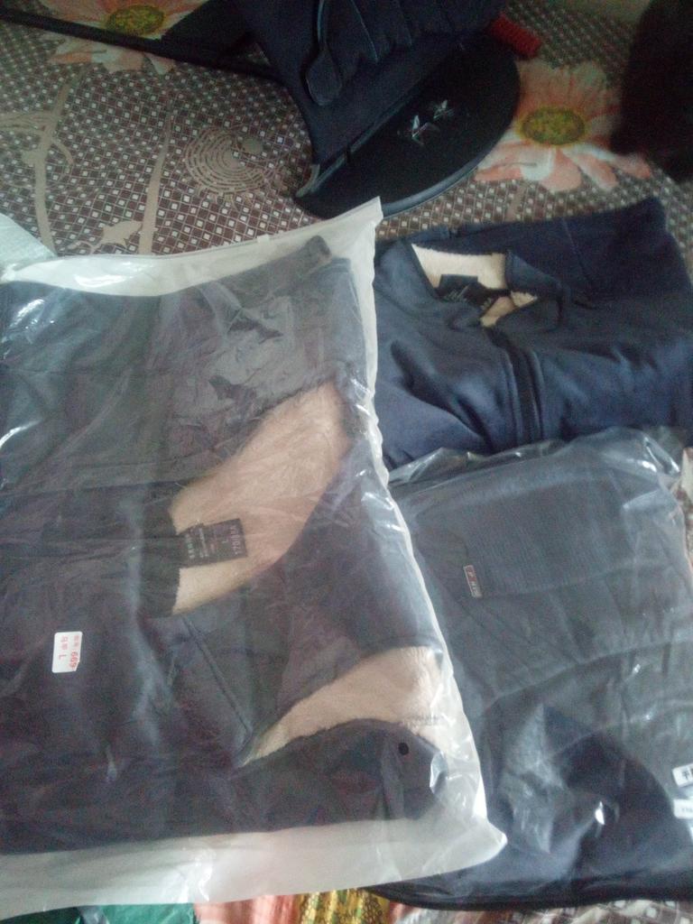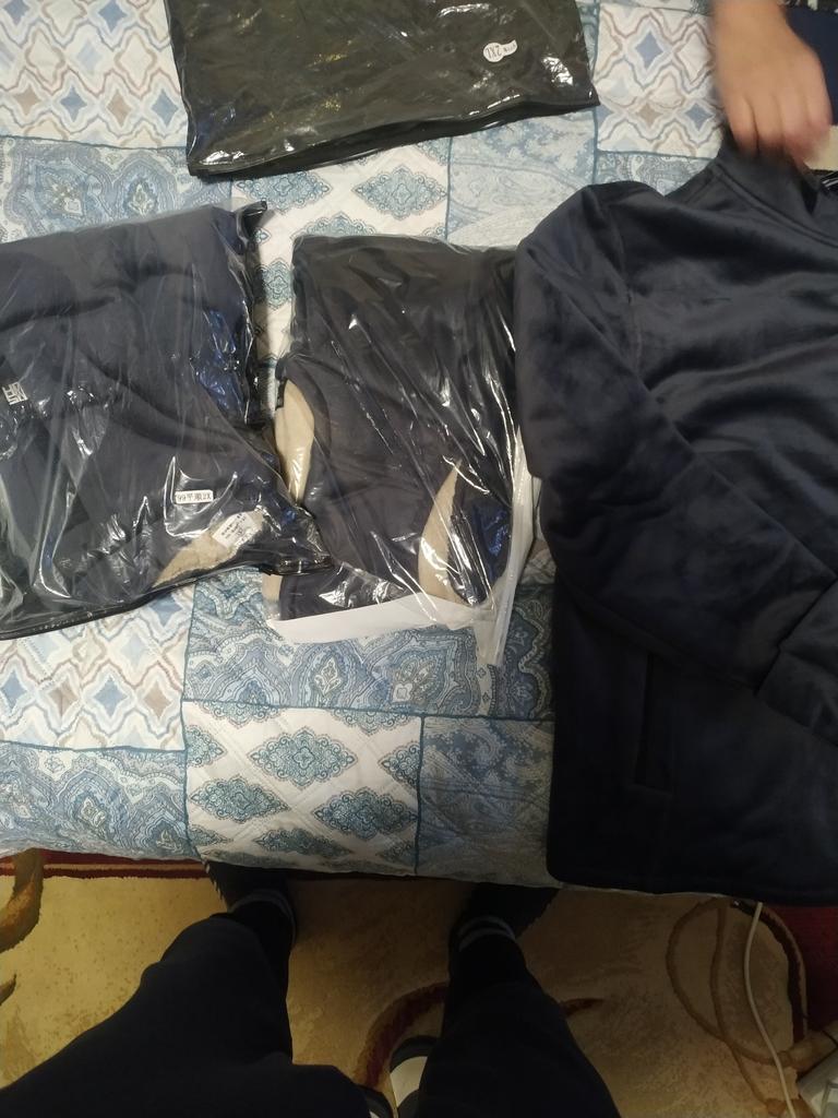 Pants are a size smaller than the T-shirt, the jacket is completely missing.