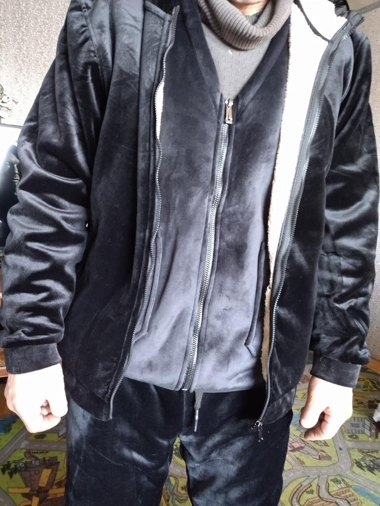Fleece Sweater Men 'S Suit Lamb Autumn And Winter Hooded Leisure Middle -Aged Three -Piece Set
