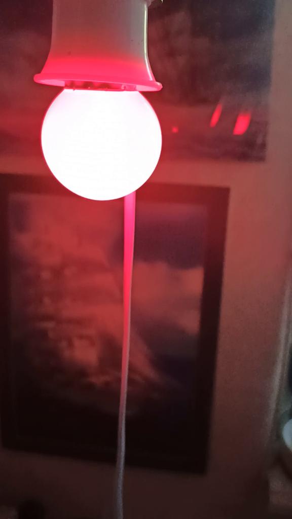 The lamp is working properly. The light is red.